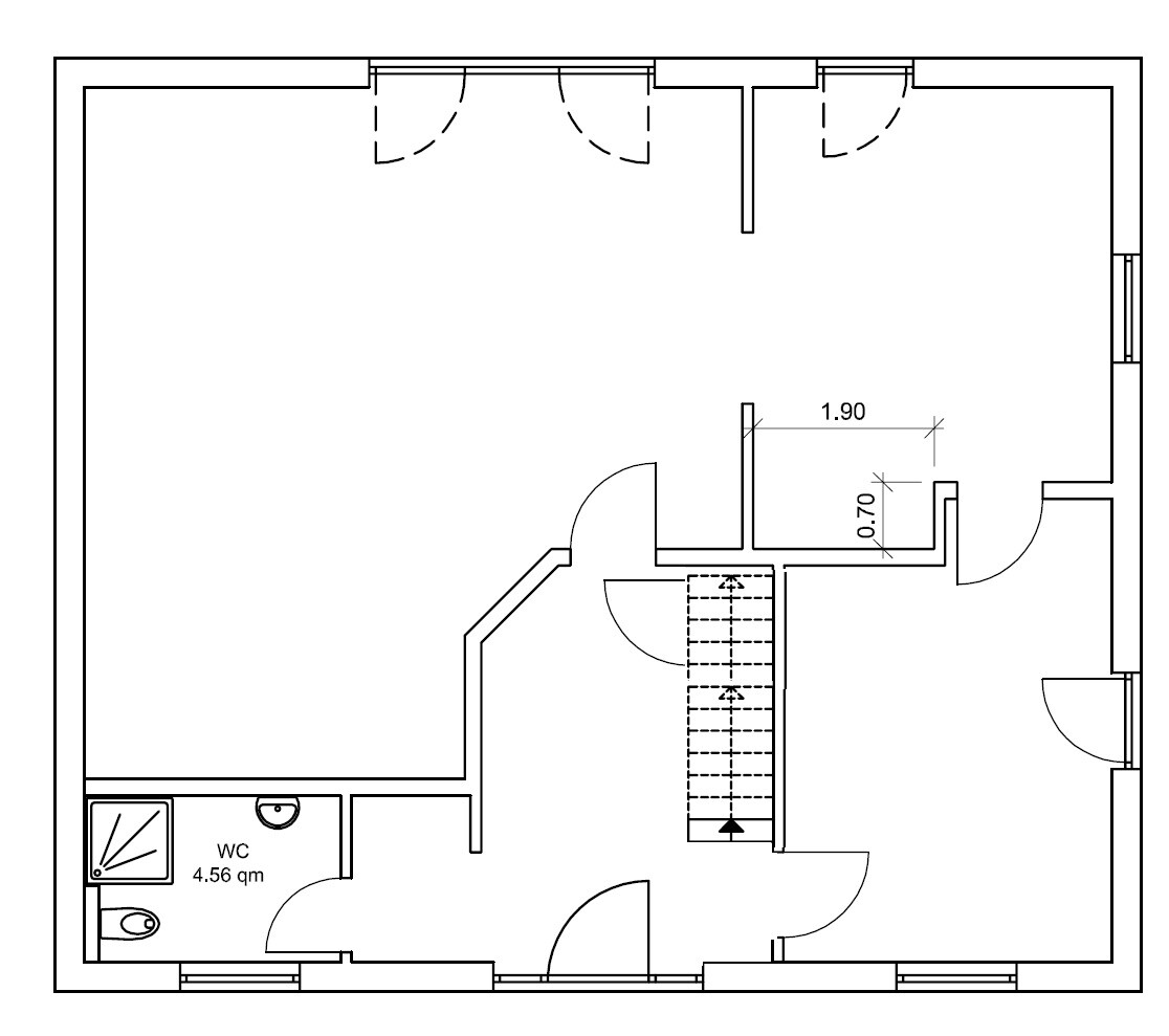 Die Frage von wo aus du diesen Shortcut zum Hauswirtschaftsraum benötigst? Von der Küche kann man direkt rein. Von Wohnzimmer ist der Weg über die Küche selten/und nur wenig weiter. Von draußen betritt man doch meistens den Hauswirtschaftsraum über den vorgesehenen Eingang, vor allem wenn die Einfahrt rechts vom Haus ist. Also bleibt nur der Weg von oben zum Hauswirtschaftsraum. Wie oft kommt es vor das man sich in den Schlafräumen befindet und dann etwas aus dem Hauswirtschaftsraum benötigt? Schwierige Frage. Die gleiche hatte ich mir auch mal gestellt, da ich einen ähnlichen Grundriss im EG habe und bin zu dem Entschluss gekommen auf den Zugang vom Flur zu verzichten.