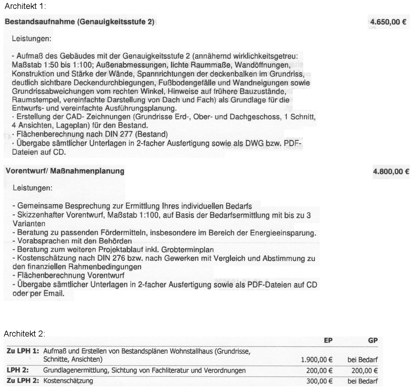 Allerdings sind die veranschlagten Kosten sehr unterschiedlich (siehe Anhang). Wie kann das sein?