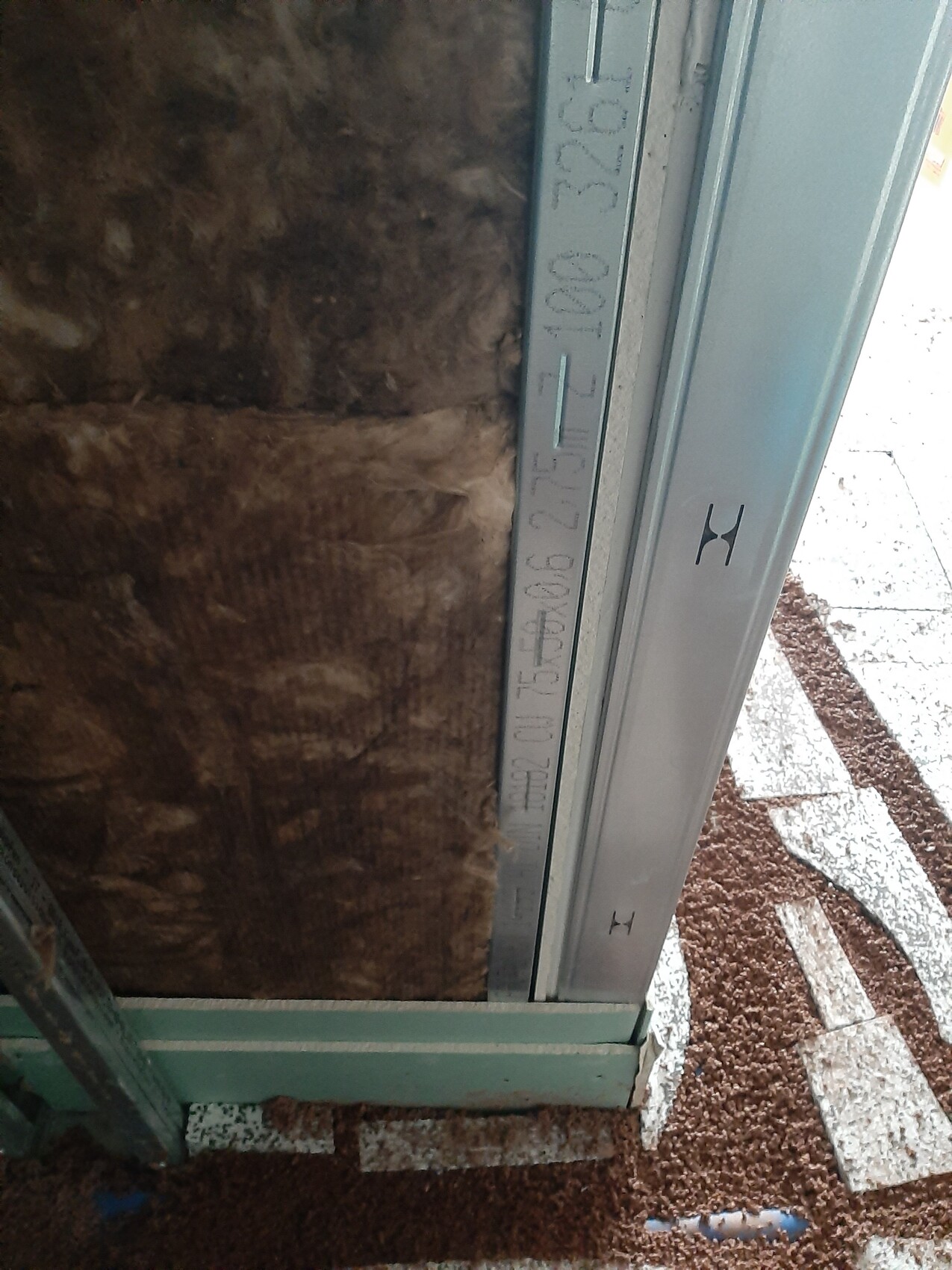 Außerdem habe ich den Fall fotografiert, wo eine 40er Platte in einem 100er Profil ist. Dort sieht man, dass der Hohlraum nicht ausgefüllt ist. Dies werde ich bspw. als Mangel anzeigen und beheben lassen (Nein das war jetzt kein Zufall, sowas bemerkt man i.d.R. vor einer "Wand- und Schachtabnahme" vorm Schließen ).