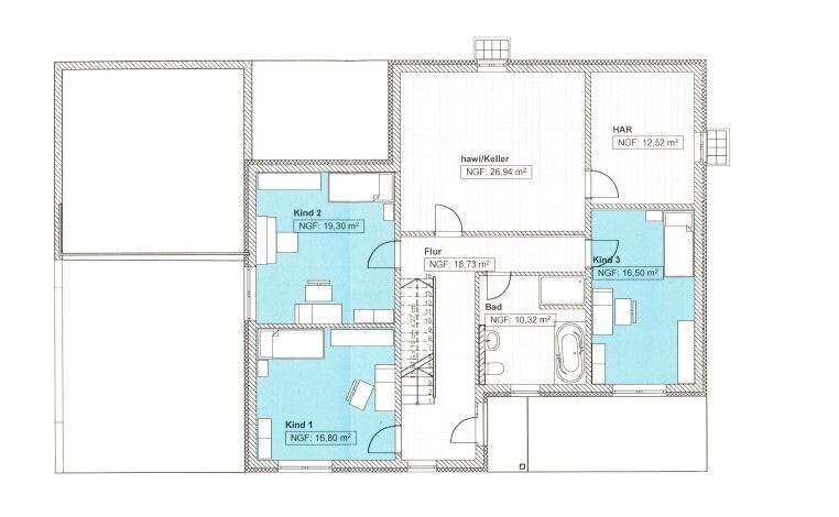 und das jetzige Kinderbad für eine Garderobennische und AR zu nutzen