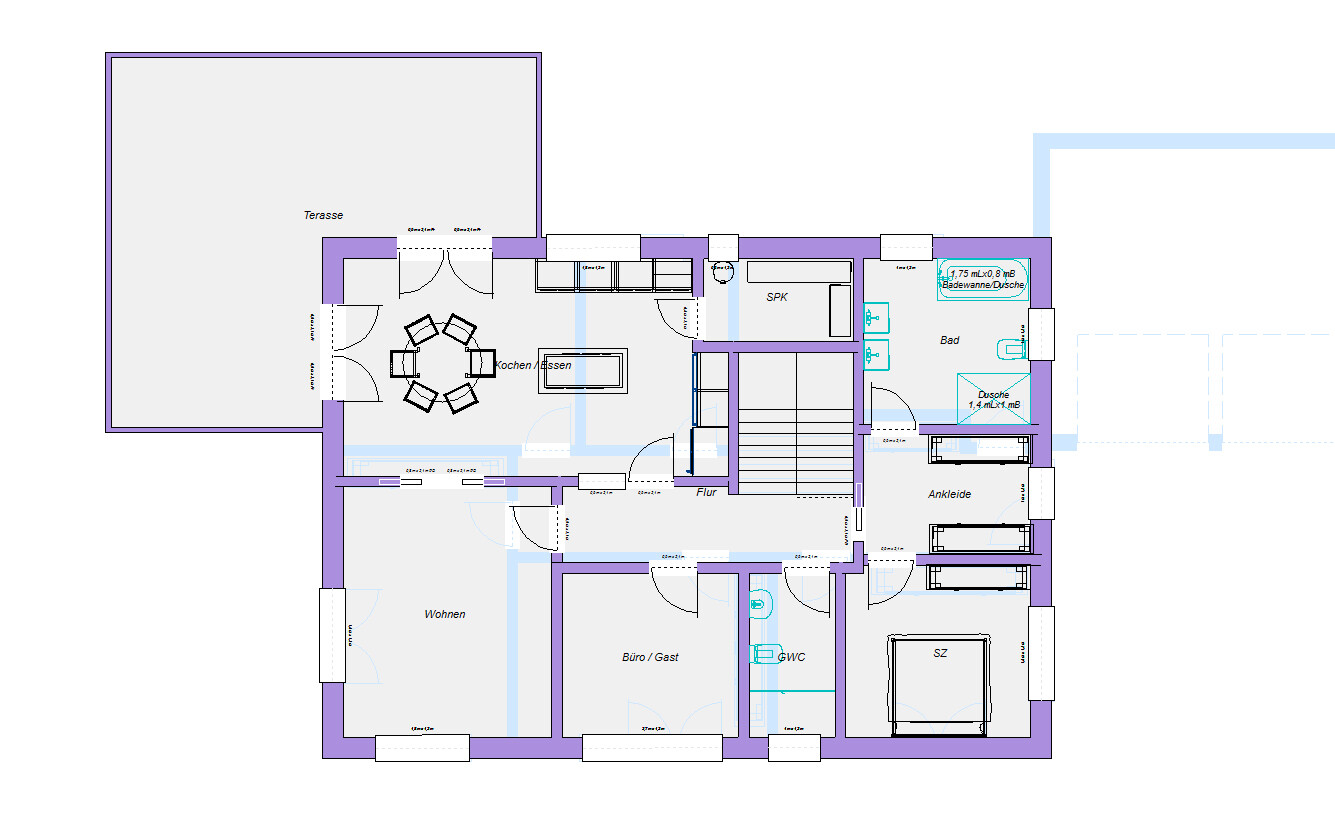 Die Flure find ich auch schlauchig. Unten wollen wir das im Eingangsbereich etwas kaschieren und ein Glasgeländer zur Treppe hin ziehen, dass soll auch oben den Flur zum Gäste-WC etwas luftiger ausschauen lassen. Der Flur oben zum Schlafzimmer hin soll auch etwas verkürzt werden und der letzte Türstummel dem Elternbereich zugeschlagen werden. Der Zutritt zum Elterntrakt soll dann in die Ankleide gehen.