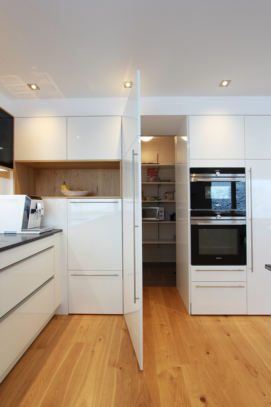 Die Speisekammer ist nicht riesig, korrekt. Wir hatten mal ein Beispiel einer integrierten Speisekammer in der Küche gesehen, die optisch in die wandhohen schränke integriert war. Hier mal ein Foto: