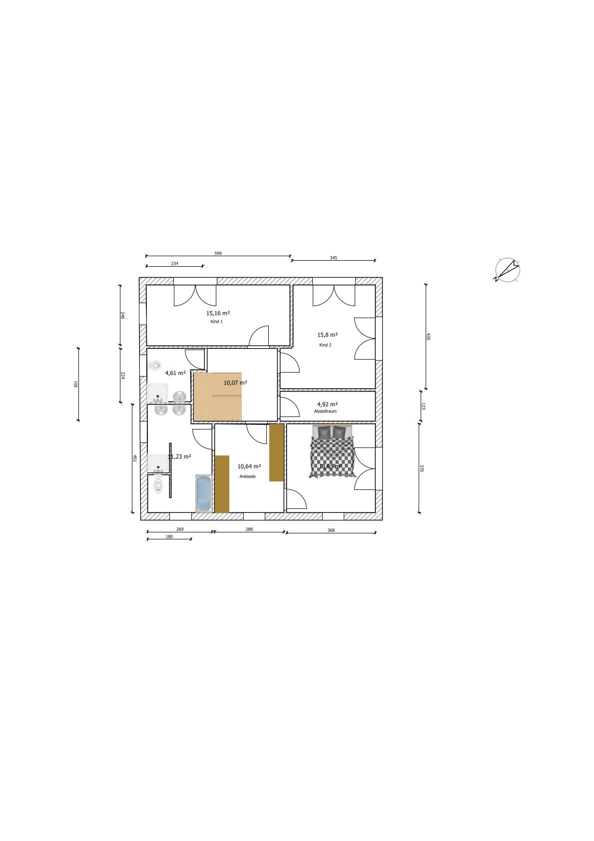 Hier mal im Flurplan die Himmelsrichtungen dargestellt.