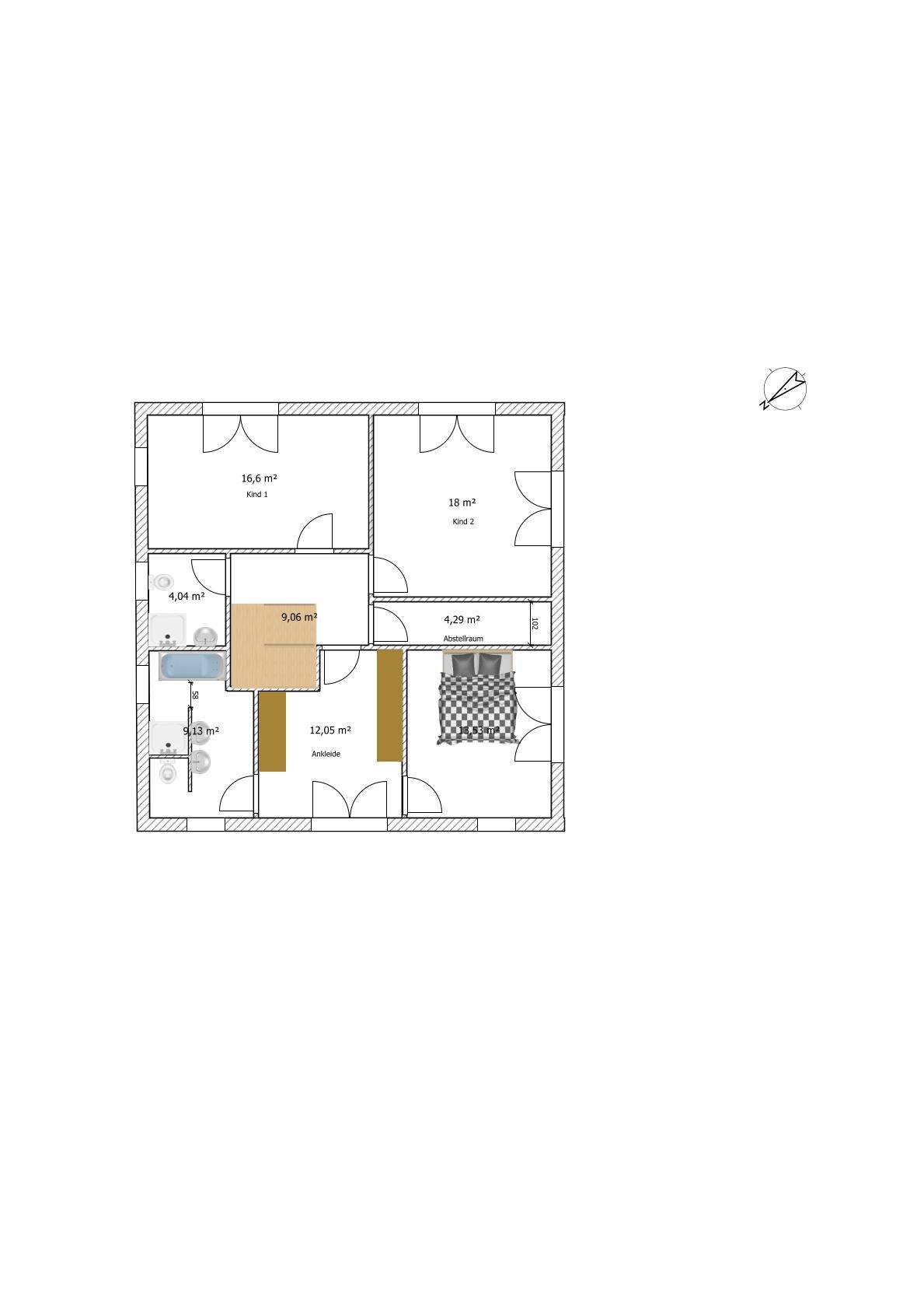 Die Fenster müssen noch etwas exakter und symmetrischer ausgerichtet werden,Nein.Du hattest vorher schon ein ungünstiges Verhältnis von vielen Räumen auf wenig Fläche - das hast nicht nur nicht verbessert, sondern durch die Quadratisierung noch verschärft. Diese Maßnahme führt stets zu Tetris und schlauchigen "Querschnitten". Allein die Quadratisierung führt zu einem Flächenmehrbedarf von pauschal gepeilt zehn Prozent - zumindest entsprechend "abgezinst" hast Du das Haus also kleiner gemacht, ohne die zu bauende und zu zahlende Fläche zu verringern. Symmetrie führt zu einem vergleichbaren Aufschlag; und sie ist "Ästhetik für Proportionslegastheniker". Ich würde sagen, den Schuß nach hinten hast Du bis jetzt schon mit ordentlich Schmackes gegen die Latte geknallt. Das nun noch mit Symmetrie nachzuwürzen, würde die versalzene Suppe perfekt machen.
