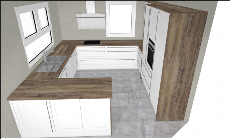 Unschön ist auch der Knick in der Linienführung bei den Hoschschränken - das lässt sich doch sicher anders lösen!