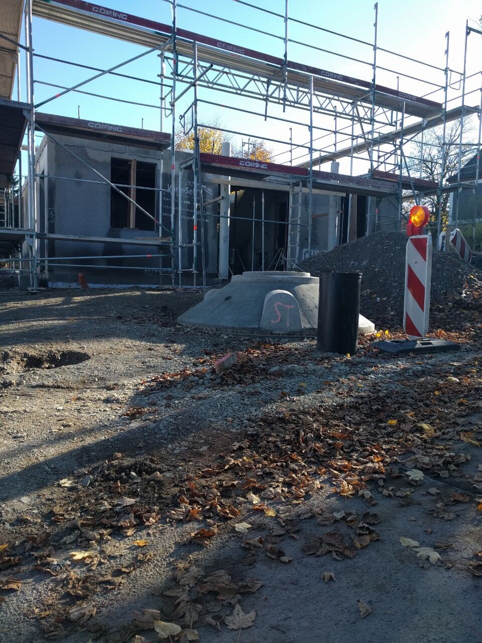 Die Zisterne wurde anfangs nicht tief genug eingegraben. Bei uns war es irgendwie ähnlich. Irgendjemand (GU oder sein Sub- Tiefbauer oder beide) waren schlicht zu doof, das Bodengutachten zu lesen. Das Ergebnis sah dann so aus: