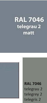 Telegrau 2 RAL 7046 scheint mir ein sehr neutrales Mittelgrau zu sein?Telegrau sind die für die Telekom eingeführten RAL-Grautöne, Telegrau 2 ist das dunklere Telekomgrau, siehe Telefonzellen. Ich würde es nicht als blau"stichig" bezeichnen, eher als ein taubenblau angehauchtes Grau.google zeigt hierzu sehr schön, wie unterschiedlich RAL-Töne wiedergegeben werden können:
