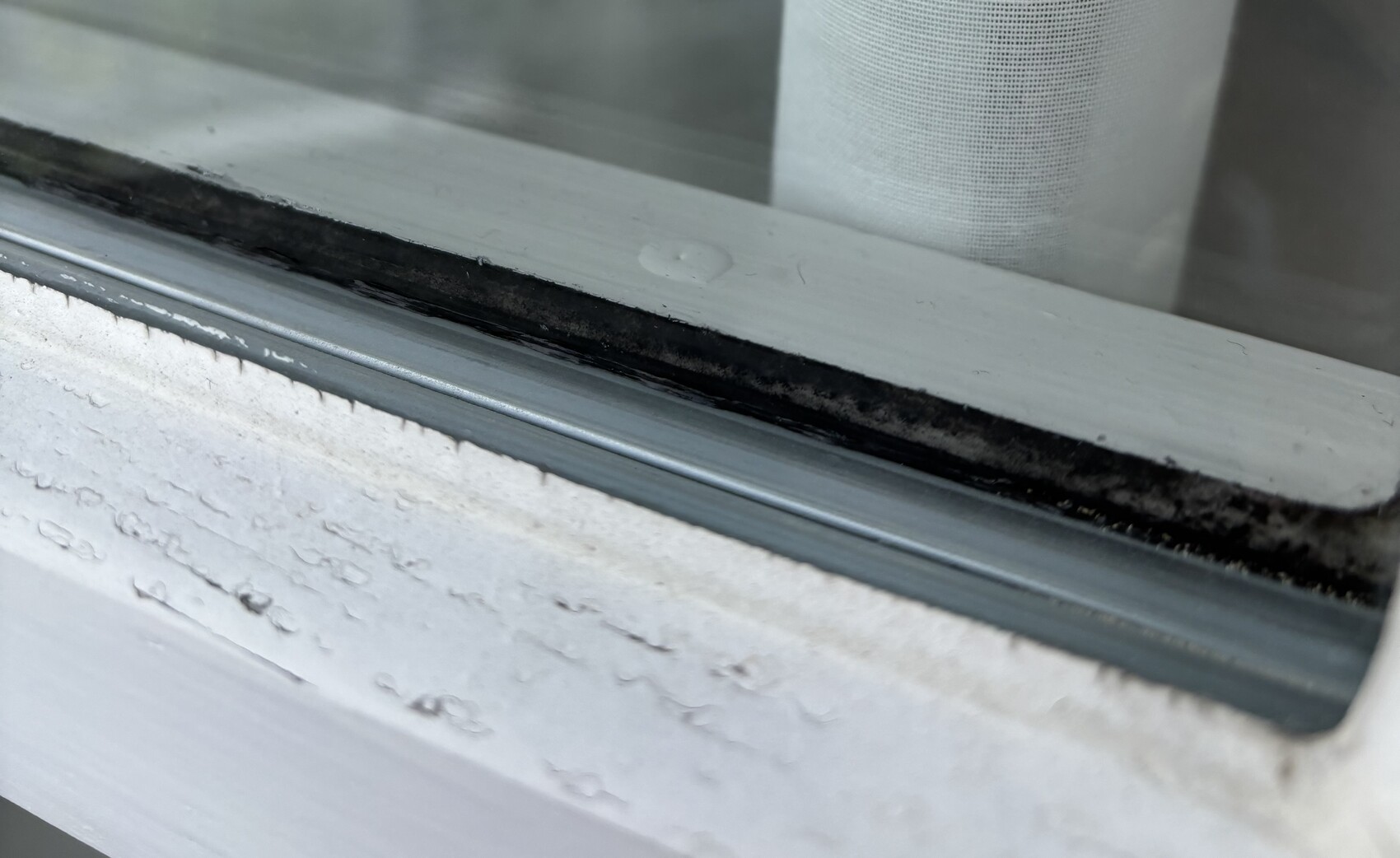 Foto 2: Schwarzes Dichtmaterial? So sieht jedes neue (Kunststoff)Fenster bei mir zuhause aus. Mehr ist nicht zu erkennen. Sorry.
