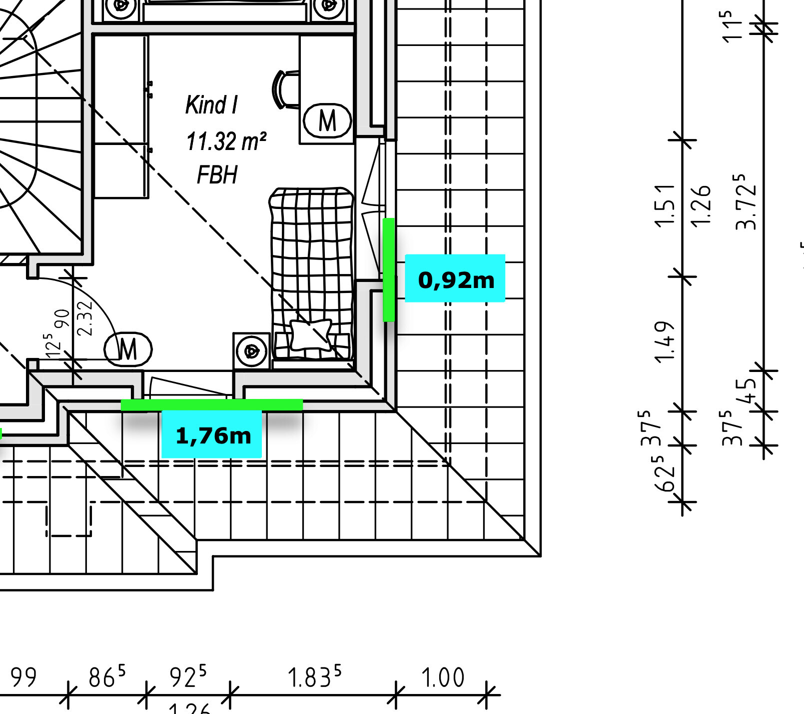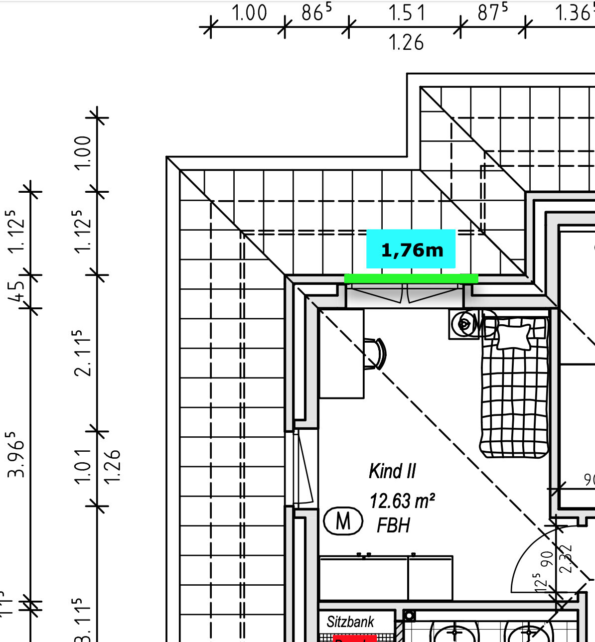 Unter dem Kinderzimmer haben wir das Gästezimmer mit zwei 88cm Fenstern...rein optisch klingt es besser 1.76m zu nehmen, aber das Argument mit Stellfläche ist natürlich immer da...und das zurecht 🙂