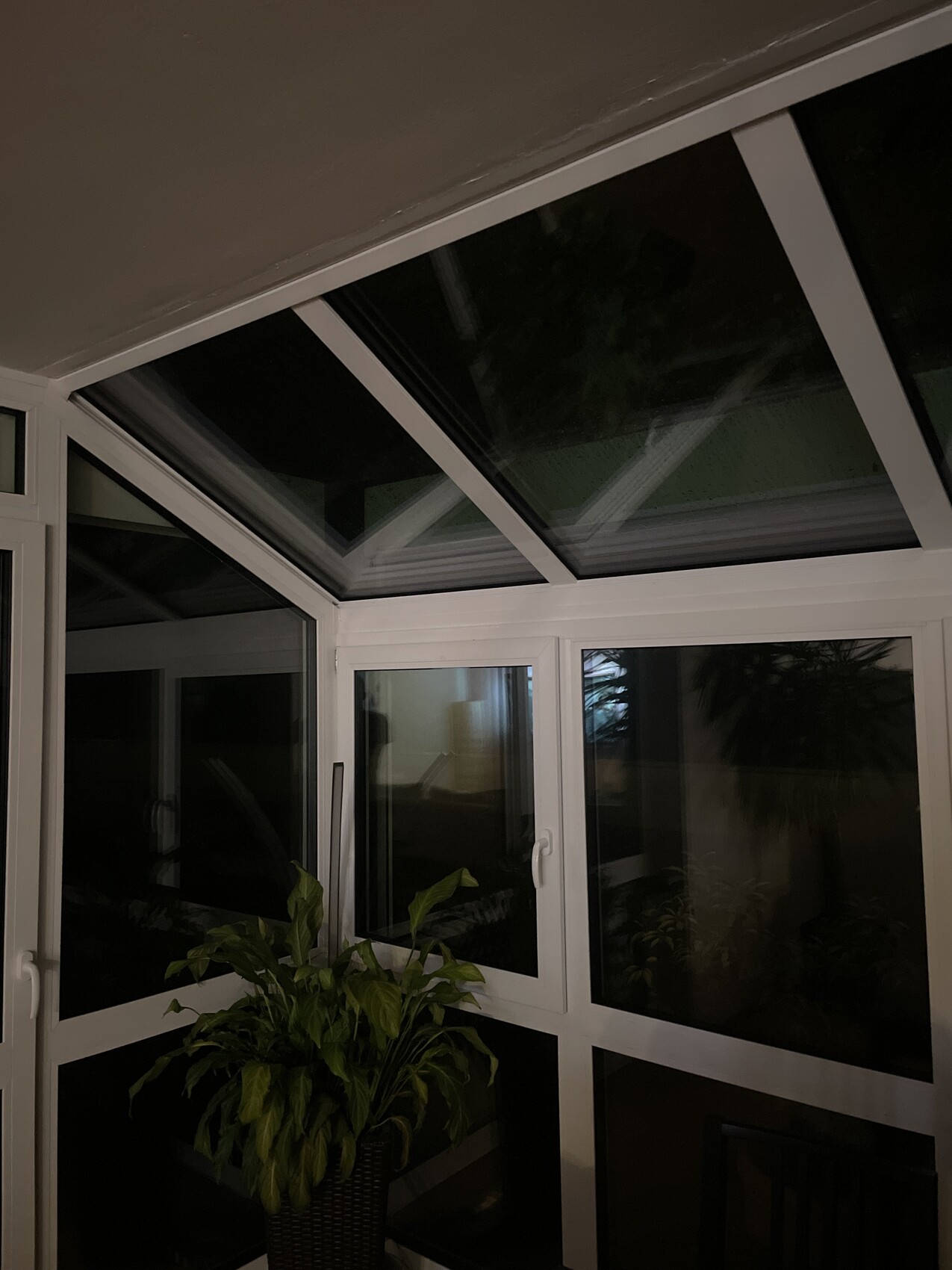 Hallo zusammen, ich habe einen Wintergarten, der vor zwei Wochen komplett demontiert und durch einen neuen ersetzt wurde. Es handelt sich um Kunststoffprofile mit Dreifachverglasung und obendrauf ist ein Schrägdach, dass an die obere Decke angeschlossen ist. Das schräge Profil (auch verglast), ist aus Metall, da dies laut Aussage des Fensterbauers aus Kunststoff nicht zulässig wäre.