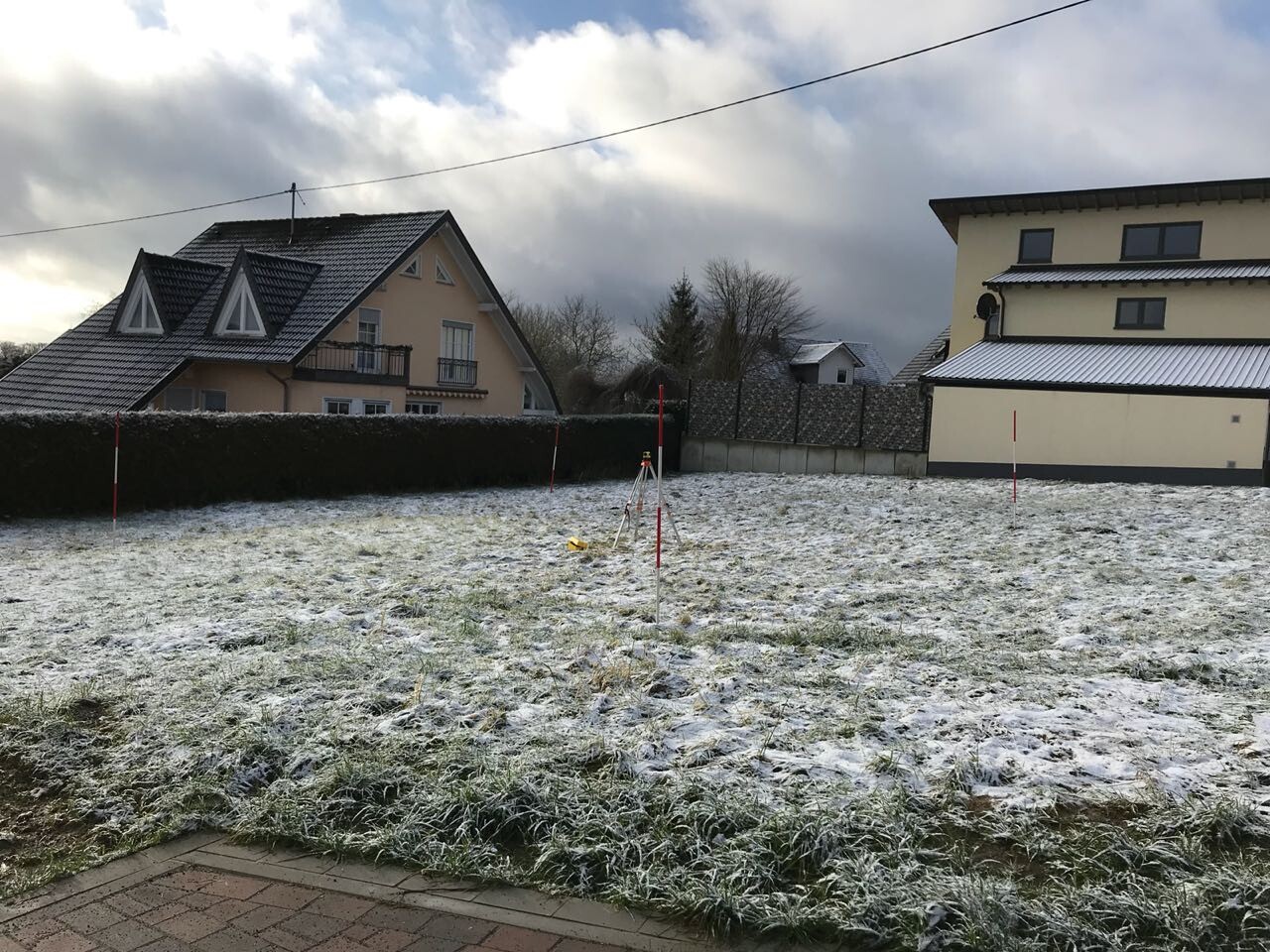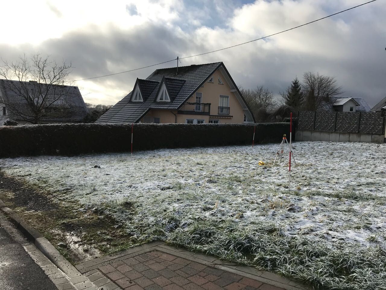Wir waren eben gerade da und haben es mit dem Nivelliergerät mal angeschaut.
