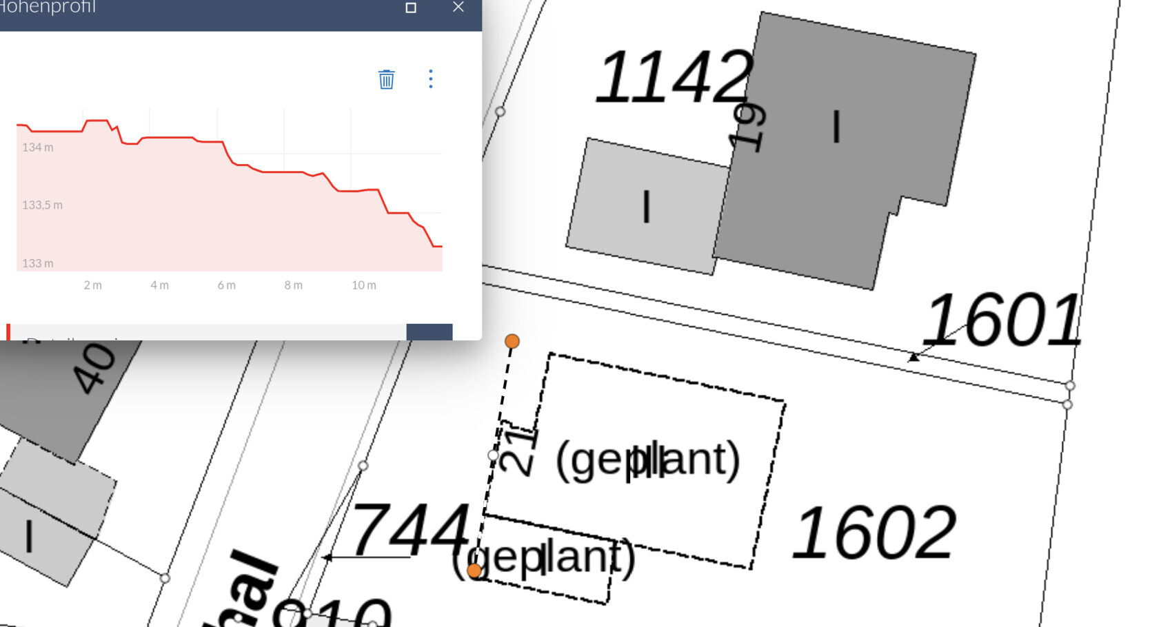 Cool danke. Auf jeden Fall ordentlich Gefälle…Ja 9 m von SO nach NW.Was steht dann beim oberen Nachbar an Deiner südlichen Grenze im Westen (an der Strasse)