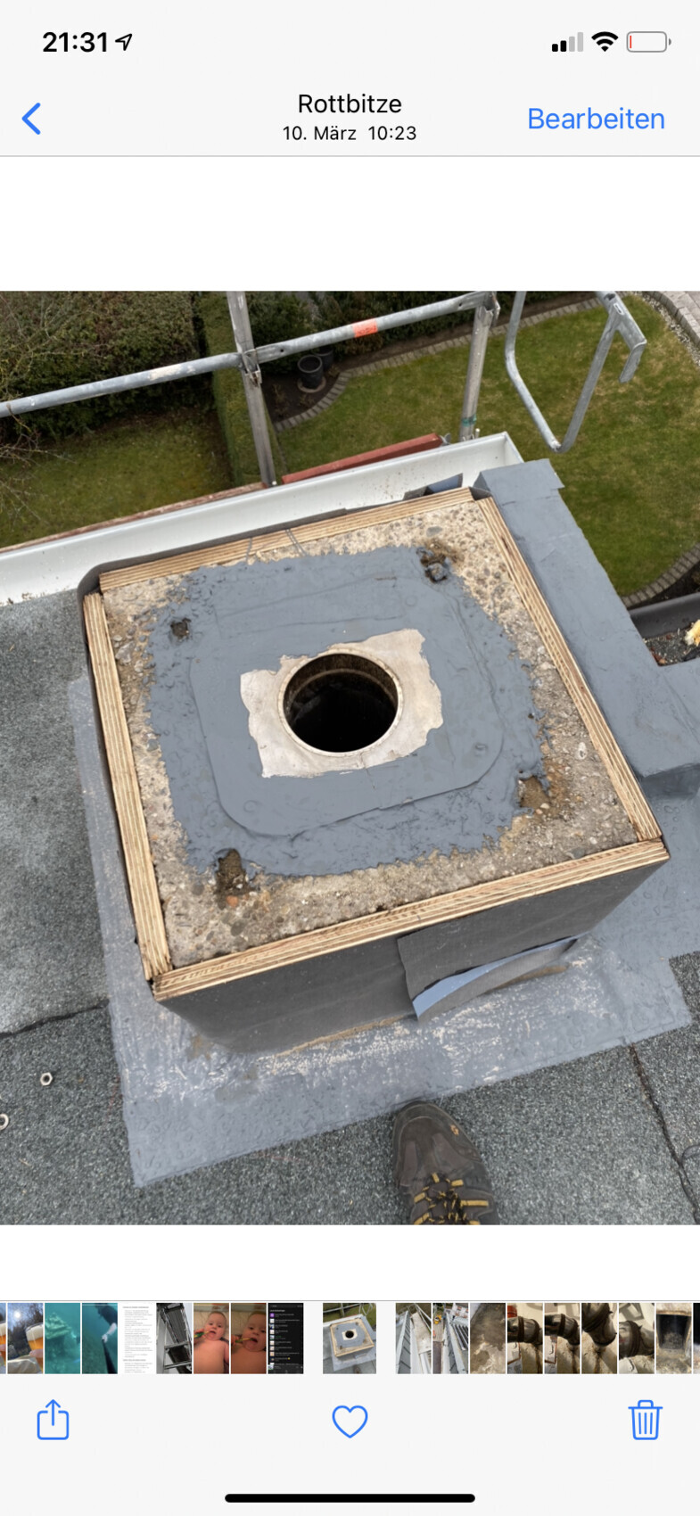 HausiKlausi16.05.21 23:50Irgendwie fehlt mir noch ein Teil der Informationen: Der Kaminschacht ist feucht, wegen eines undichten Daches. Was ist mit dem Schacht selber? Ist er oben offen? Ist der Zug noch befeuert bzw. genutzt? Wo kommt der halbe Zentimeter Wasser her - alles durch den Schacht in den Keller gelaufen? Wie genau sah die undichte Stelle im Dach aus?