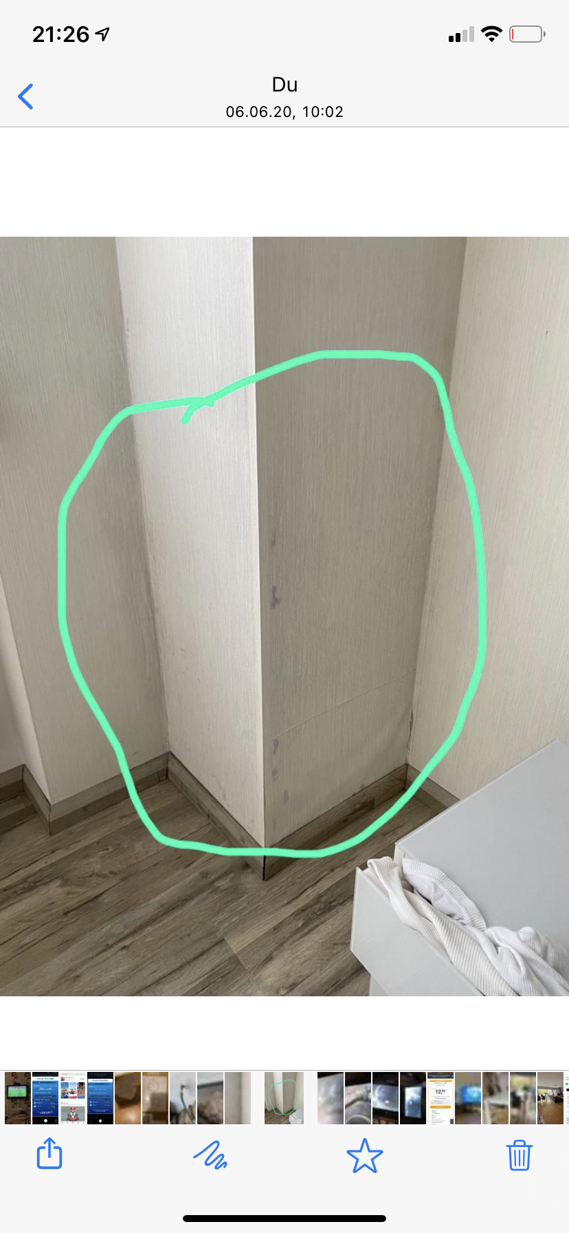 Letztes Jahr im Frühling war die Tapete im Schlafzimmer im Bereich des Schachtes feucht. Wir haben daraufhin die Wand an einer Stelle auf gemacht - hier war feuchte Dämmung enthalten. Diese haben wir im Bereich des Loches entfernt.