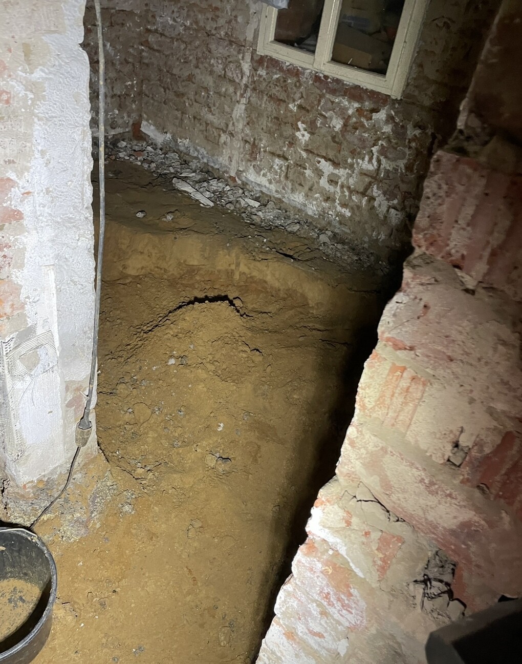 Das ist der Raum auf dem ersten Foto, nachdem überall der Putz abgeschlagen wurde und das Gemäuer getrocknet wurde. Von außen wird auch noch gedämmt...
