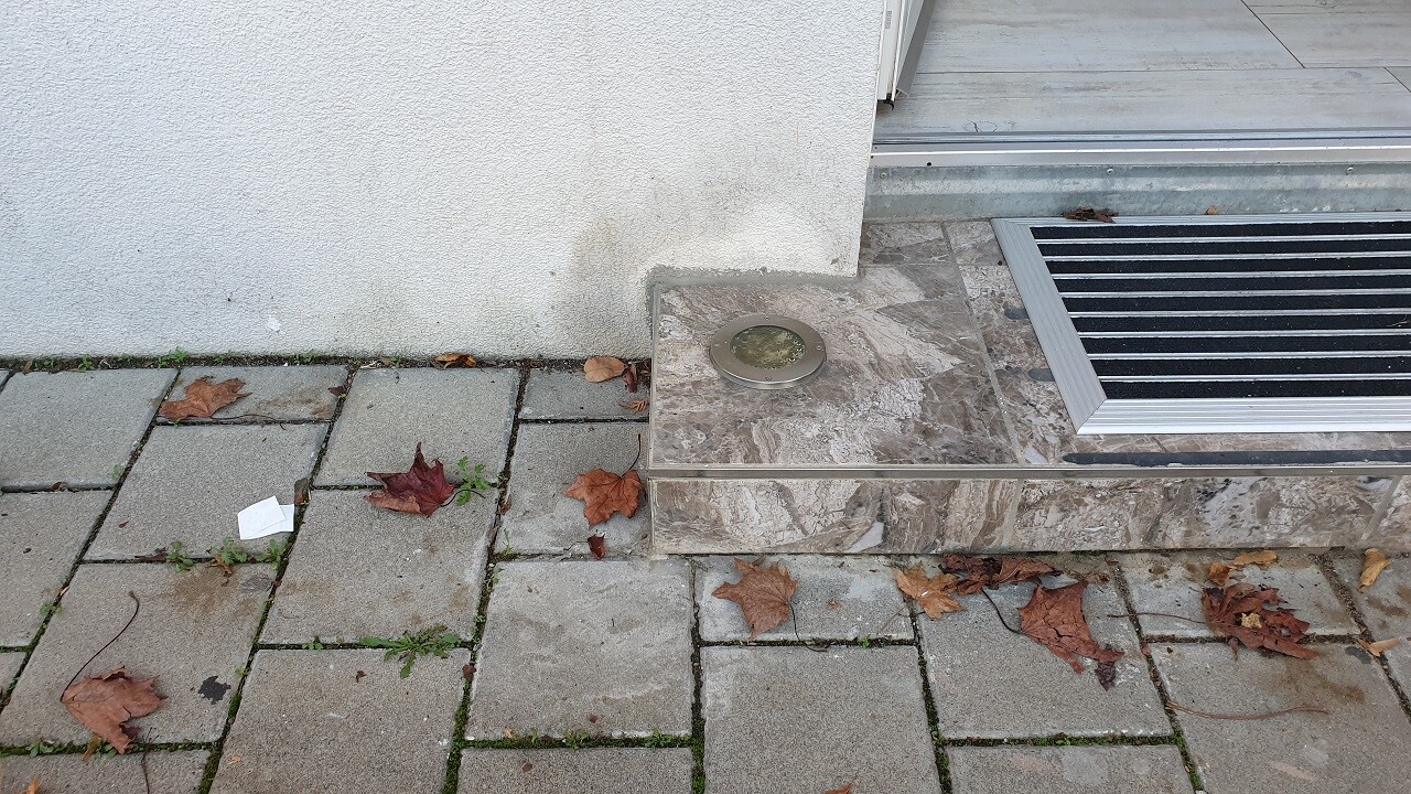 an meinem Reihenmittelhaus (Bj 2004) gibt es direkt neben der Eingangsvorstufe einen kreisrunden Fleck, der mich schon seit paar Jahren stört und der m.E. (vielleicht auch nur subjektiv wahrgenommen) letzte Zeit etwas intensiver zum Vorschein kam, was jedoch auch am kälteren und feuchteren Wetter liegen kann. Das Haus hat 30-35 cm dickes WDVS wo eben der Fleck darauf ist, auf der gegenüberliegenden Seite und überall anders (Vorder- und Hinterseite des Hauses) gibt es solchen Stellen in keinster Wiese. Auf der Innenseite (also im Haus selbst) liegt das Raum hoch geflieste Gästetoilette, es ist zwar ein Heizkörper in der Nähe, aber die Wasserstränge des Heizkörpers gehen in den Boden, d.h. die Wahrscheinlichkeit, dass irgendwo innen drin ein Rohr geplatzt ist tendiert gegen Null. Des Weiteren irritiert mich, dass der Fleck nicht durchgehend nach unten geht, sondern quasi einen kreisrunden Bogen um die Eingangsvorstufe bildet