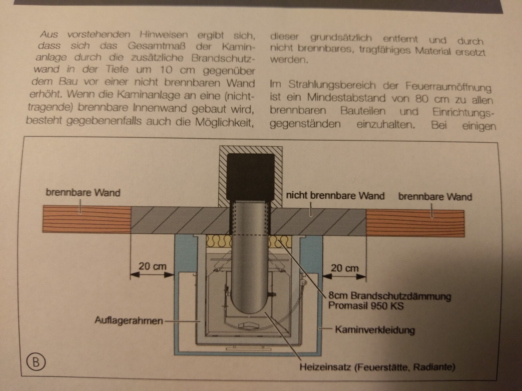 PaulohnePlan10.02.19 19:40Wir haben mit zwei verschiedenen Kaminbauern gesprochen. Es ging um zwei Dinge. Einmal um die Verkleidung der Rückwand vom Kamin und vorrangig wegen der Standsicherheit. Der Kamin hat zwar einen sogenannten Galgen, aber dieser kann das Gewicht des oberen Kaminaufbaus nicht 100%ig halten. Der Galgen ist auf der Rückseite des Kamins in der Bodenplatte befestigt und zieht diesen nach unten. Die jetzt zusätzlich geforderte und auch beauftragte 10 cm starke Wand(so breit und hoch wie der Kamin) wird mit der Zimmerwand verbunden. Zusätzlich wird in der neuen Wand der Kamin verankert. Dies sei ein Erfahrungswert aus den letzten Montagen des Kamins. Eine Nummer kleiner würde der Galgen reichen, aber durch den Aufbau unseres Kamins, sei die zusätzliche Verstärkung notwendig. Hätte der Galgen gereicht, hätten wir alternativ eine 4 cm dicke feuerfeste Promatverkleidung nehmen können. Schlussendlich preislich noch in Ordnung aber Schade dass es erst so spät aufgefallen ist.Wollte wenigstens noch die Antwort bringen, da ihr auch alle immer mit Tipps und Ratschlägen behilflich seid.