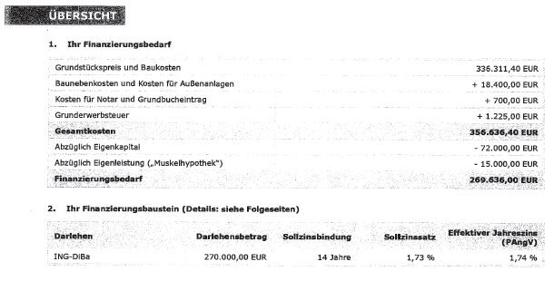 Bereits dort sehe ich die erste Schwierigkeit aufgrund der sehr niedrig angesetzten Baunebenkosten inklusive Außenanlagen.