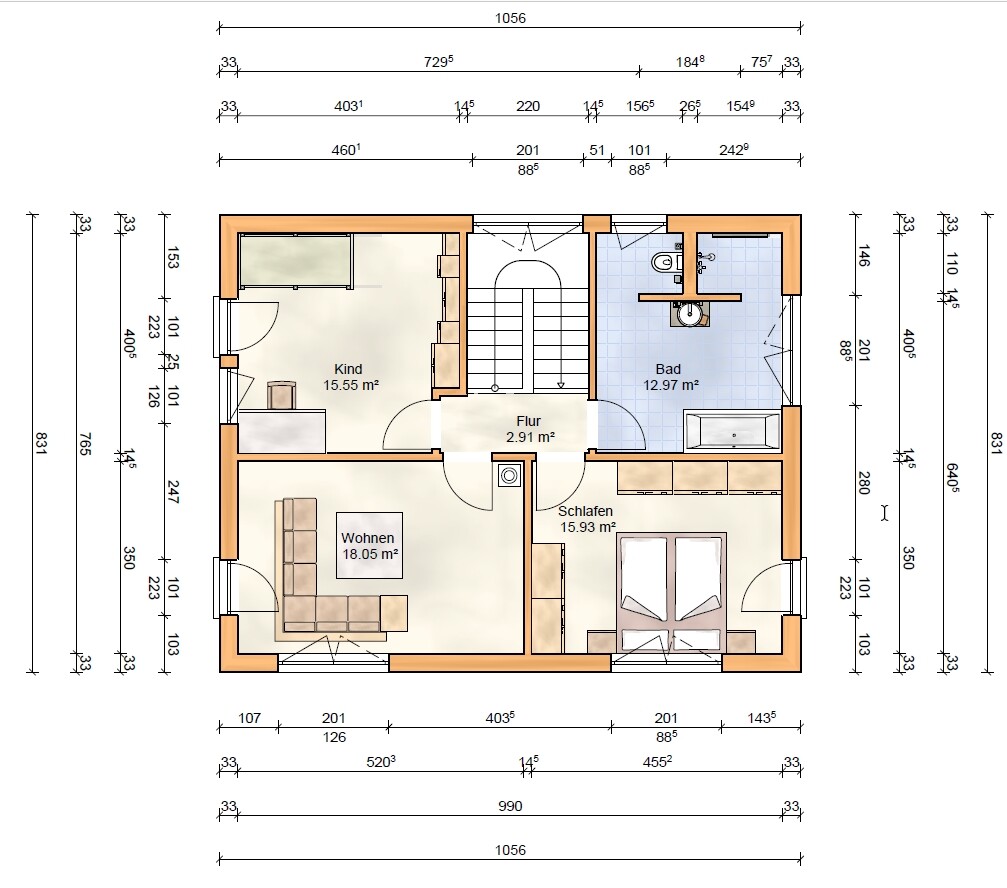 - von einer langen geraden Treppe wurden uns wegen Platzbedarf abgeraten bzw. kreiert einen zu großen Flur im OG