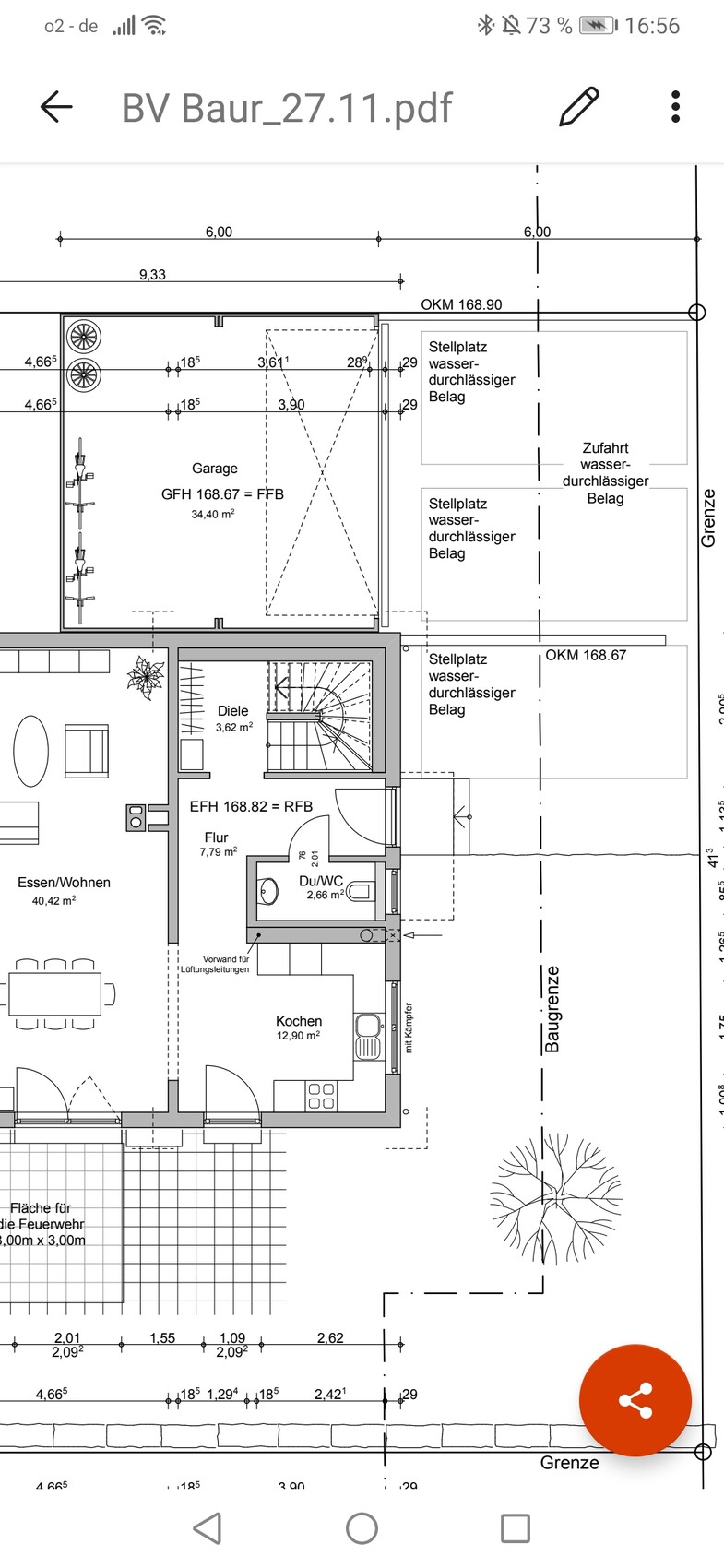 Leicht hanglagig mit hinten 1,5 Meter Stützmauer und vorne ein wenig abschüssig. Bild hängt auch an.