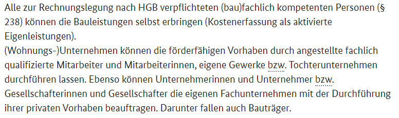 Beachte auch, das du womöglich keine Förderung bekommst, wenn die Ausführung keine Fachfirma übernimmt. Material der Eigenleistung wird nicht mehr gefördert, oder?Es wird alles über eine Fachfirma laufen. (Mein Bester ist selbständiger SHK-Meister).