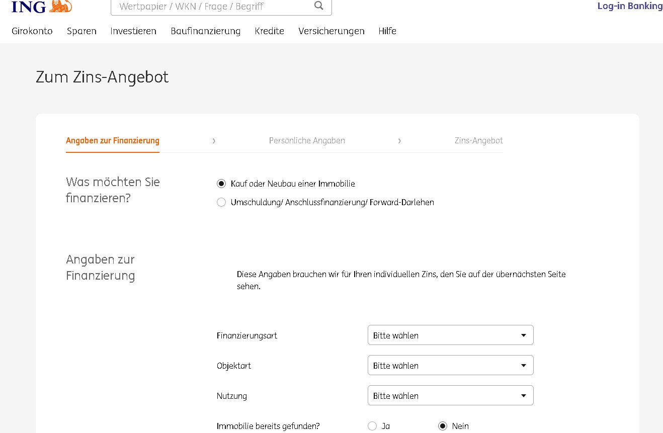 Also wir haben uns schon von der Ing direkt ein Angebot machen lassen, weil wir da beide Kunden sind. Die lokale Sparkasse hat uns dann aber den gleichen Zins geboten und dann haben wir uns für die Vorort und mit direktem Ansprechpartner Variante entschieden.