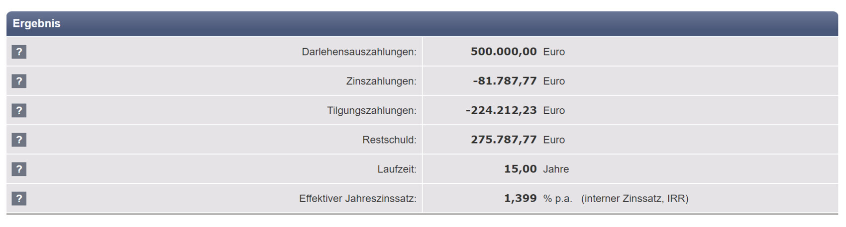 Restschuld nach 15 Jahren liegt hier bei ca 275.800 Euro.