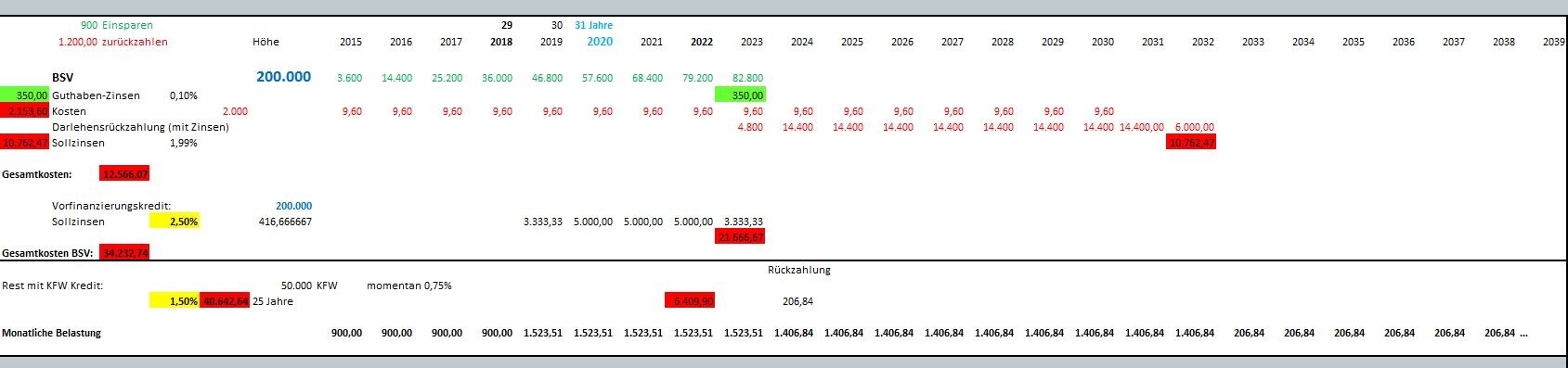 - 200.000 Bausparvertrag und 50.000 KFW-Kredit