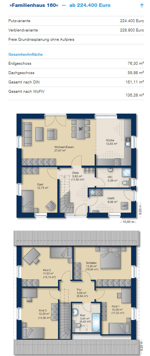 Und genau DAS macht den Endpreis aus. 160qm „müssen“ es heute schon sein.