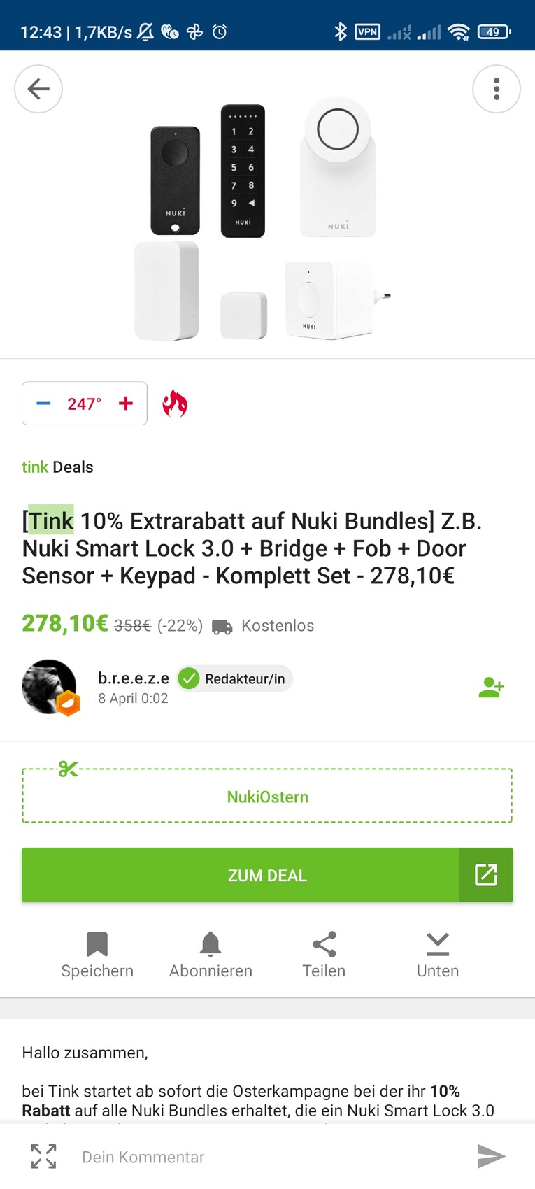 Parallel dazu hab ich mir noch ein Angebot für den Mediator von Assa Abloy erstellen lassen. Das Angebot ist zwar noch nicht endgültig, aber es dürfte bei rund 2300-2500€ inklusive Einbau landen und ist natürlich ganz schön heavy.