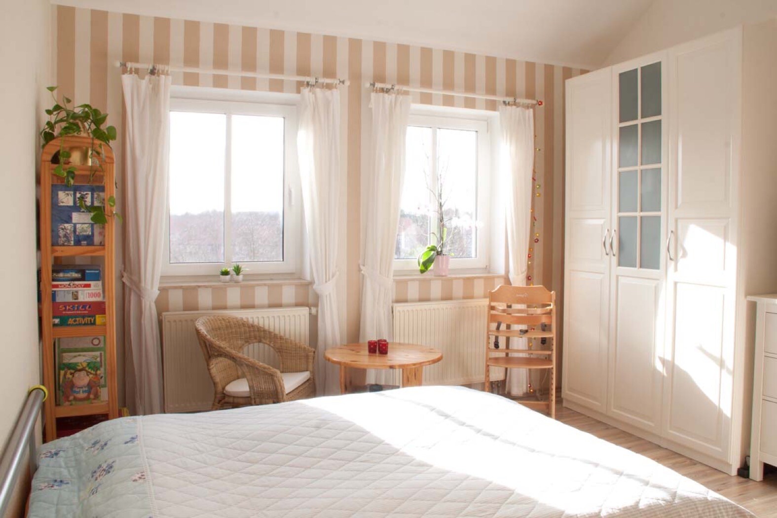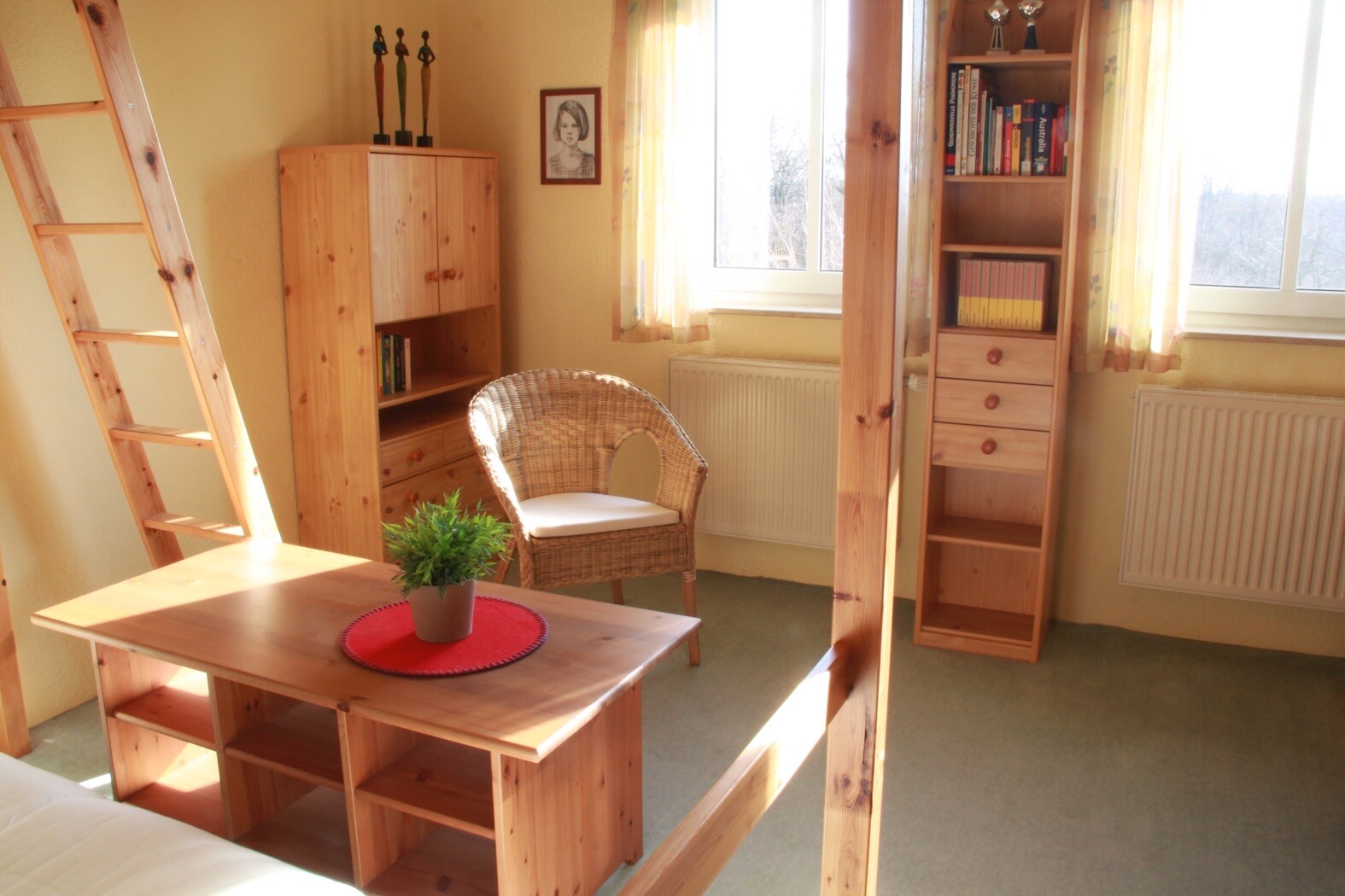 Unser früheres Haus hatte genau solche zwei Kinderzimmer.. höchster Punkt fast 5 Meter! Ich fand’s klasse.. In eines der Zimmer bauten wir ein breites Hochbett.. da konnte man oben noch stehen. Das größere Kinderzimmer hatte ca. 4 x 4,60 Meter. Vielleicht helfen dir die Bilder..