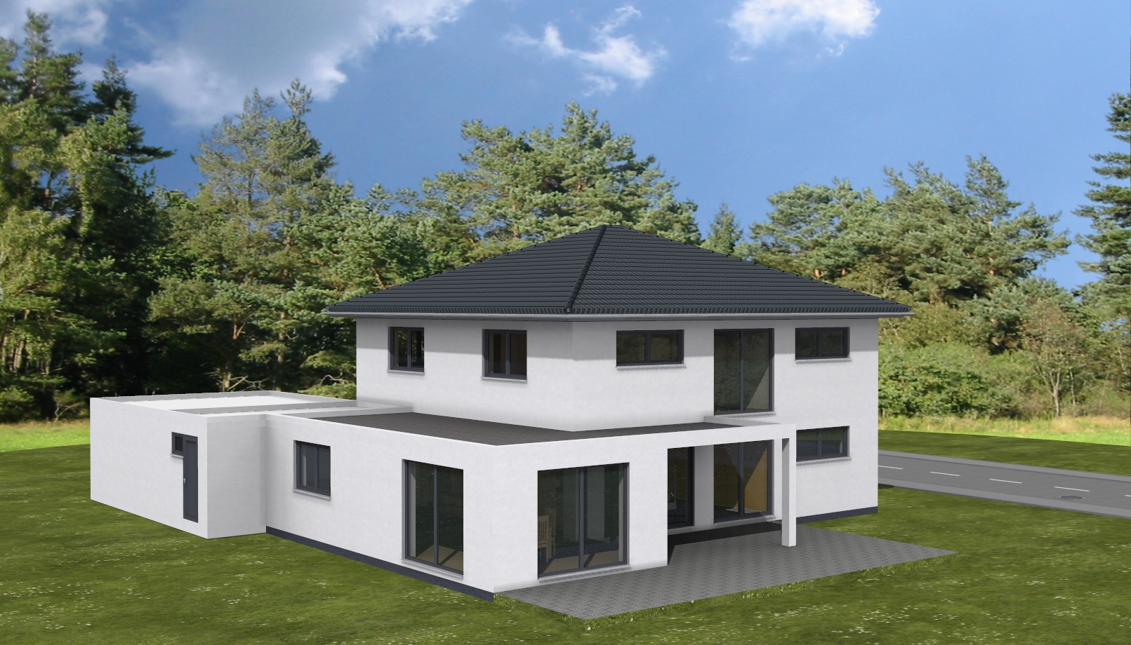 Daher haben wir mal ein Pultdach planen lassen und waren überrascht, dass es doch ganz gut aussieht. Toskana ist für mich ein NoGo, dass solls nicht werden!