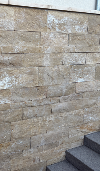 Nach Gesprächen mit allen beteiligten Handwerkern ist der jetzige Stand, dass nun die Abdeckplatten abgenommen und durch breitere ersetzt werden. Danach wird die Mauer neu verputzt.