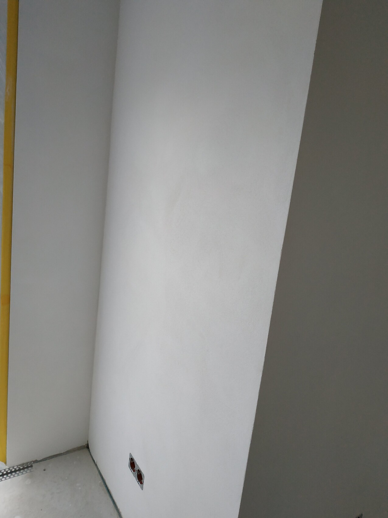 Der Profi meinte, das wäre normal da sich ja die Körner in verschiedene Richtungen beim Aufziehen des Putzes verteilen. Wenn man sich aber auch mal andere Innenputze anschaut, sind die meist immer deckend.