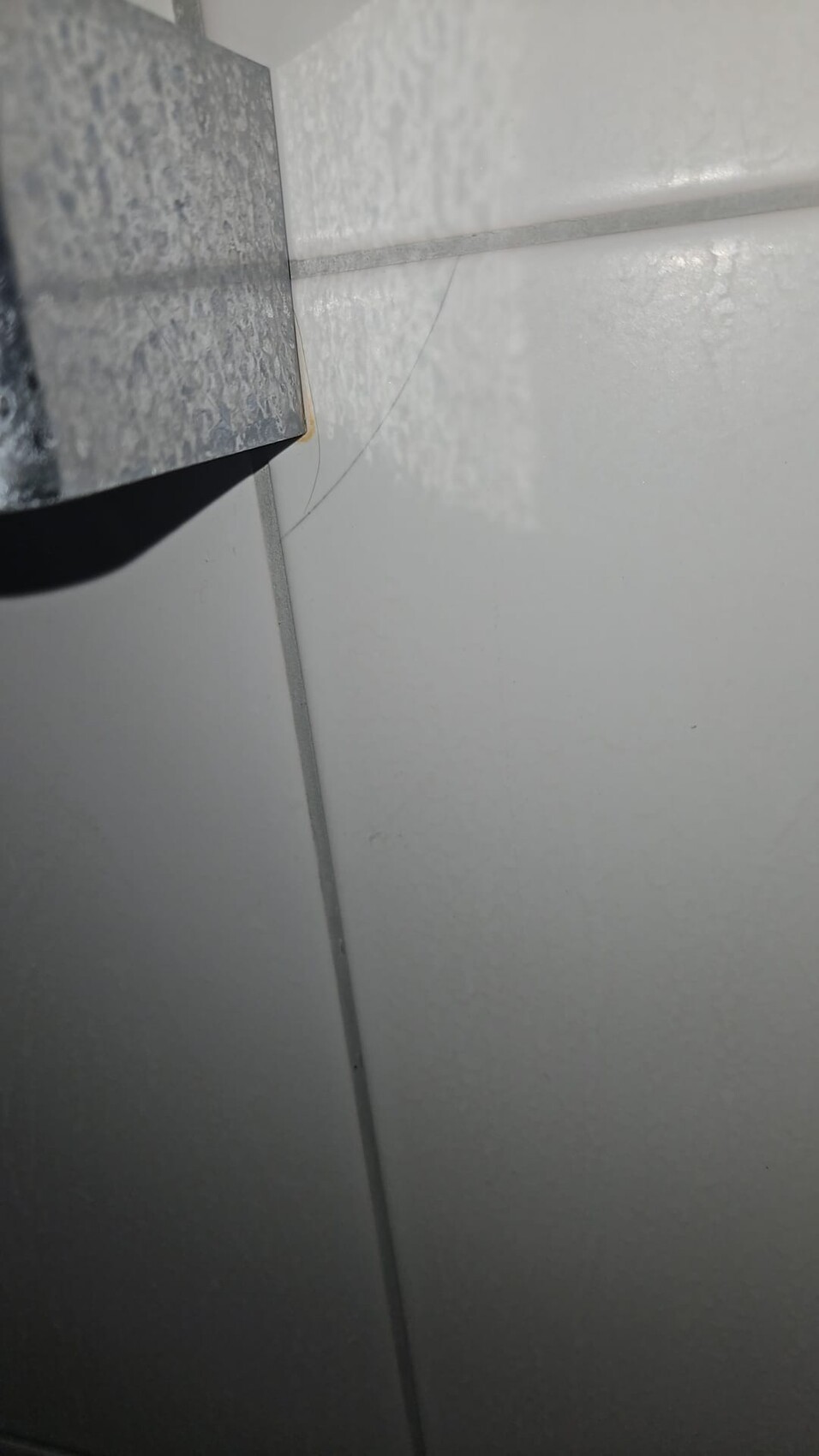 Beim zweiten Bild könnte man ja noch versuchen demjenigen die Schuld zu geben, der die Duschstange angebohrt an, beim ersten Bild fällt mir aber für den Riss keine andere Erklärung ein, als eine mechanische Einwirkung auf die Fliese.