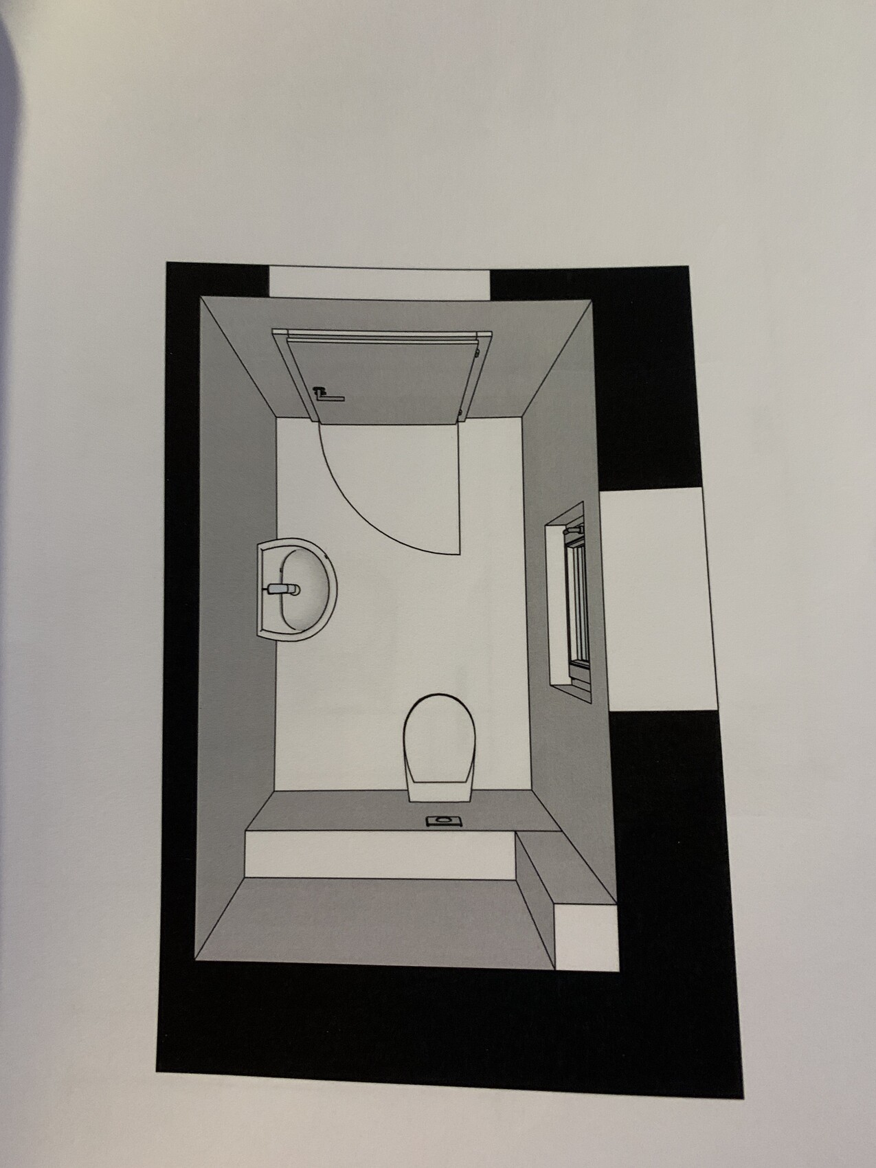 Ja, genau. Keine Dusche und ein wandhängendes WC.