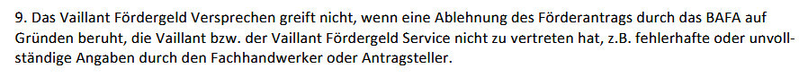Vaillant-Fördergeld gilt nicht bei BAFA-Ablehnung aus Gründen, die Vaillant nicht zu vertreten hat.
