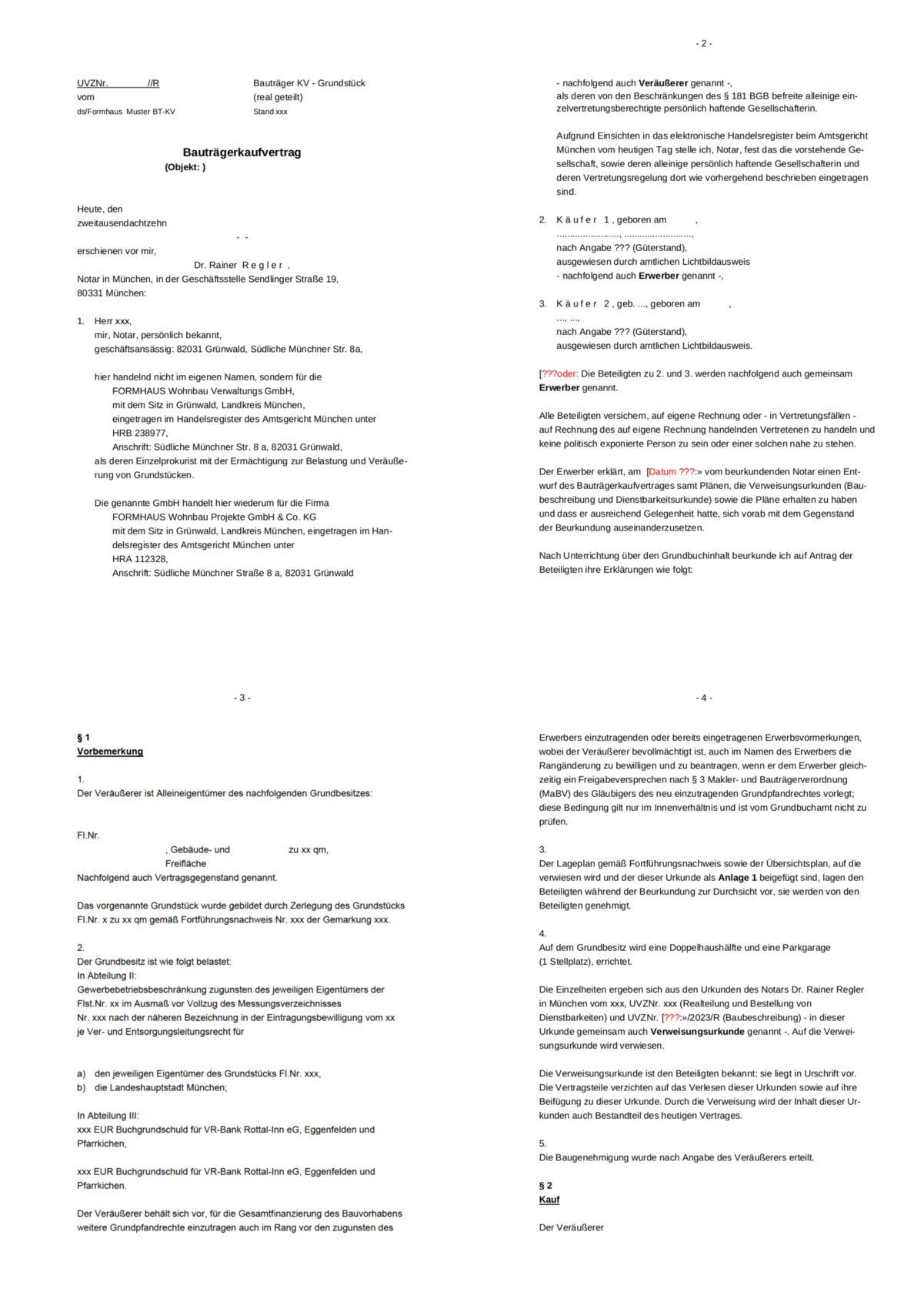 wir überlegen ebenfalls mit Formhaus in München zu bauen. Der Bauvertrag wäre mit der S.Ü.B.A. Süddeutsche Bau GmbH.