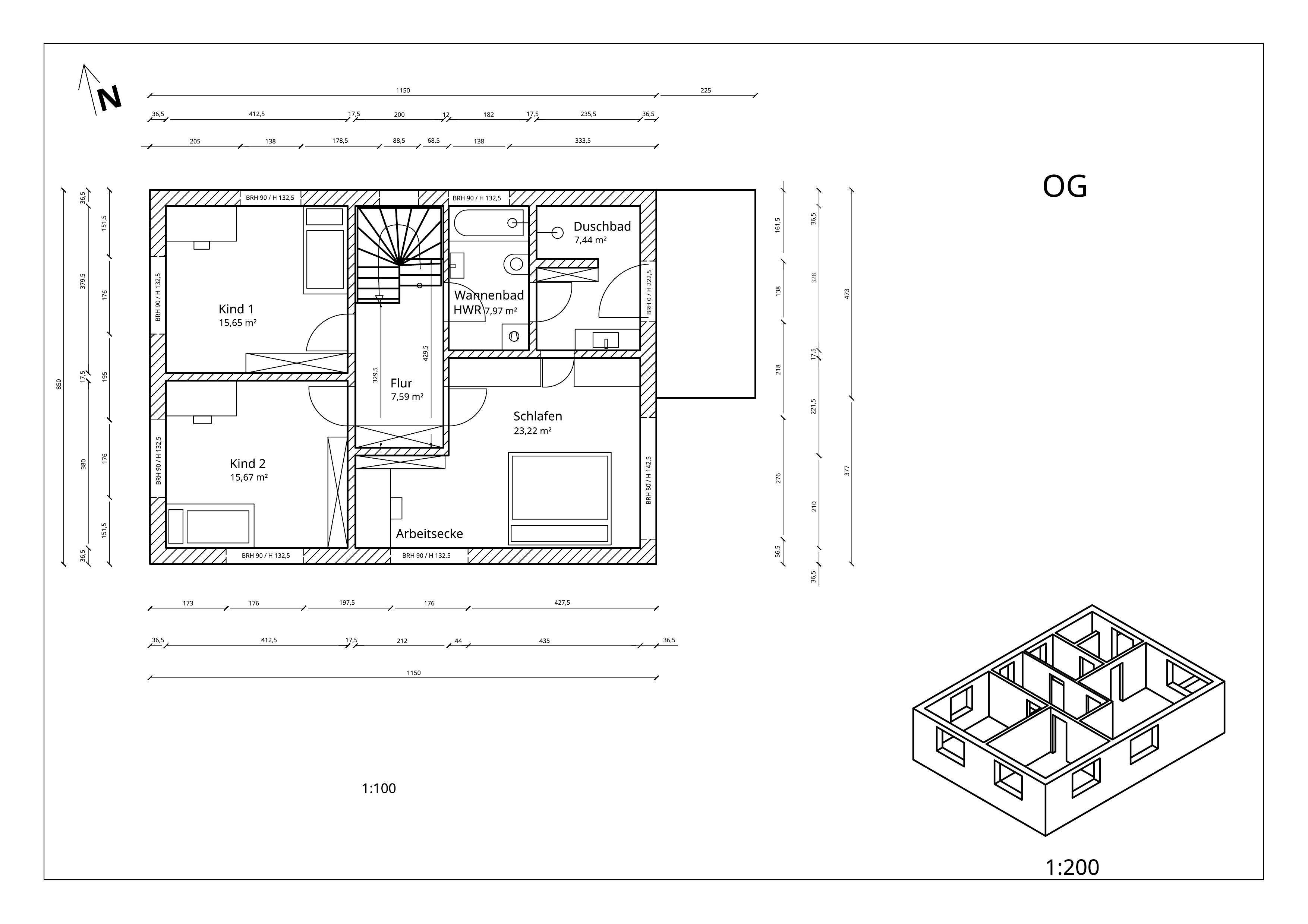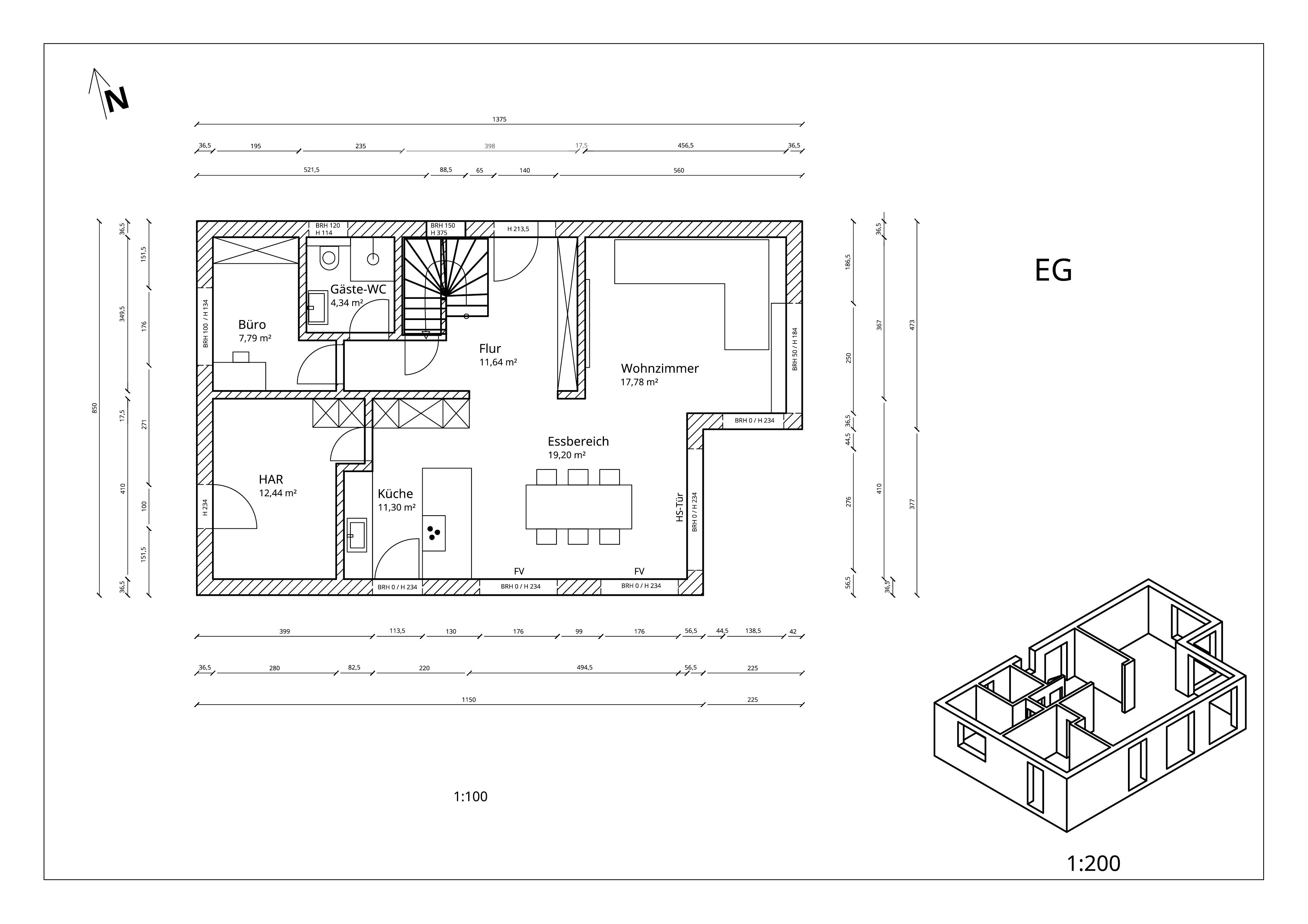 - Arbeitszimmer EG verwinkelt (Dusch-WC im EG soll auch im Alter als alleiniges Bad funktionieren und auch jetzt schon ausreichend Bewegungsfläche bieten, was das Arbeitszimmer verkleinert)