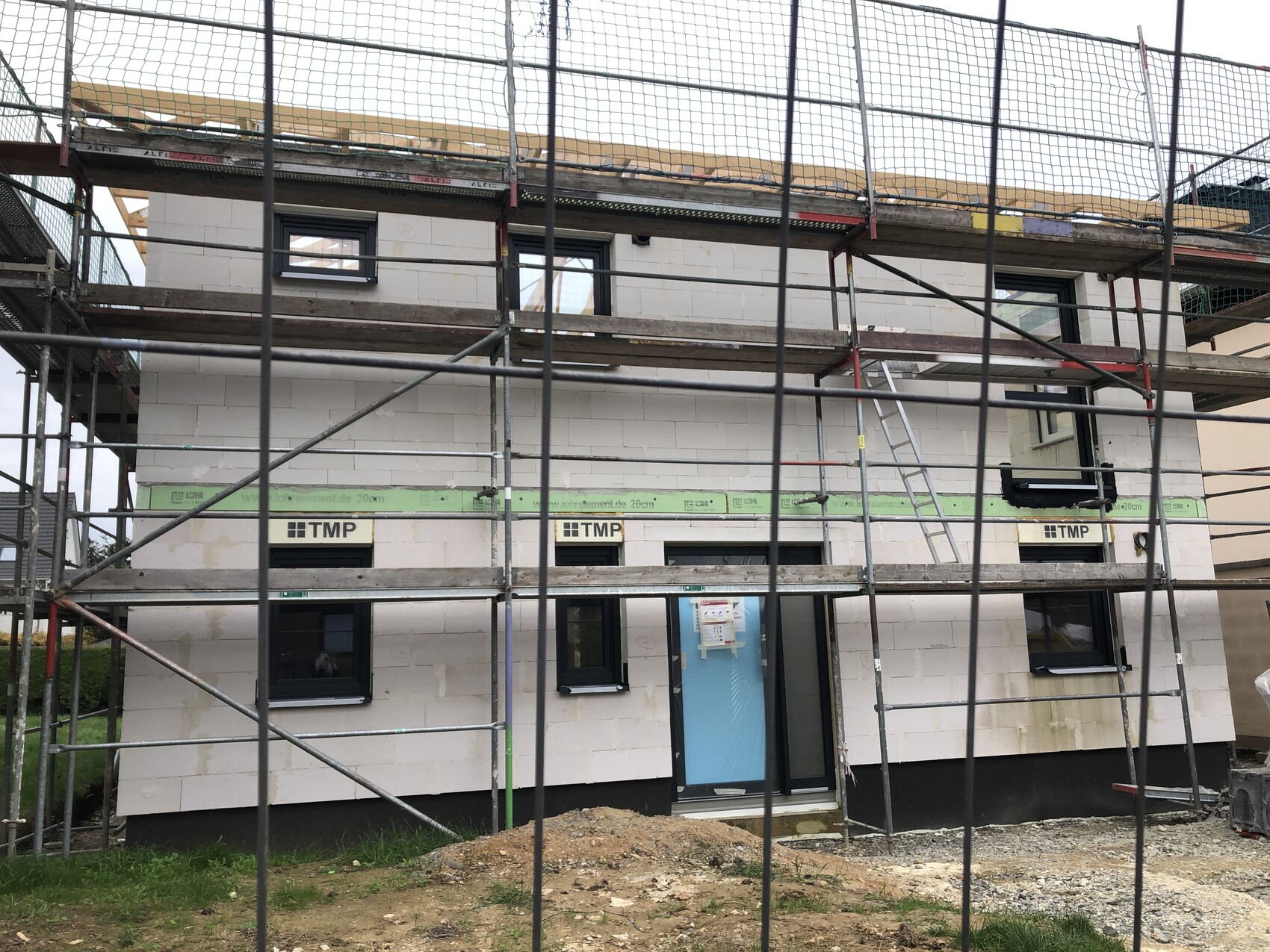 @Costruttrice Das war die erste Variante die wir sehr lange favorisiert hatten, aber wir wissen nicht wie wir dann an der linken Seite weiter machen sollen. Über die Ecke weiterstreichen oder an der Ecke aufhören. Der Garagenstandort ist nich nicht klar also rechts oder links… Wir hatten auch die Überlegung es mit Holzpaneelen zu machen, aber da wir keine Dämmung haben sondern dicke Wände würde das Holz abstehen.@verwirrt Wie sieht es denn um die Ecke an der linken (und auch an den anderen) Seite aus? Ich denke, dass man das farblich Abgesetzte auch anderswo am Haus nochmal aufnehmen sollte, je nach Fenstersituation, vielleicht aber reduzierter. Wo ist denn das Regenrohr?