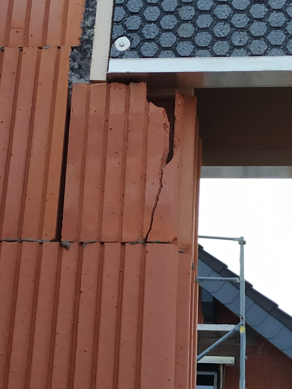 2. Das Mauerwerk ist ebenfalls mangelhaft. Solche Spalte dürfen nicht sein und die Auflager an den Stützen dürfen so auch nicht ausgebildet sein.
