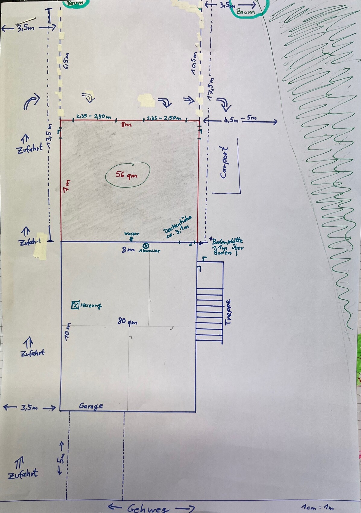 Neben dem Anbau soll ein Carport für 1 Fahrzeug dazu kommen.
