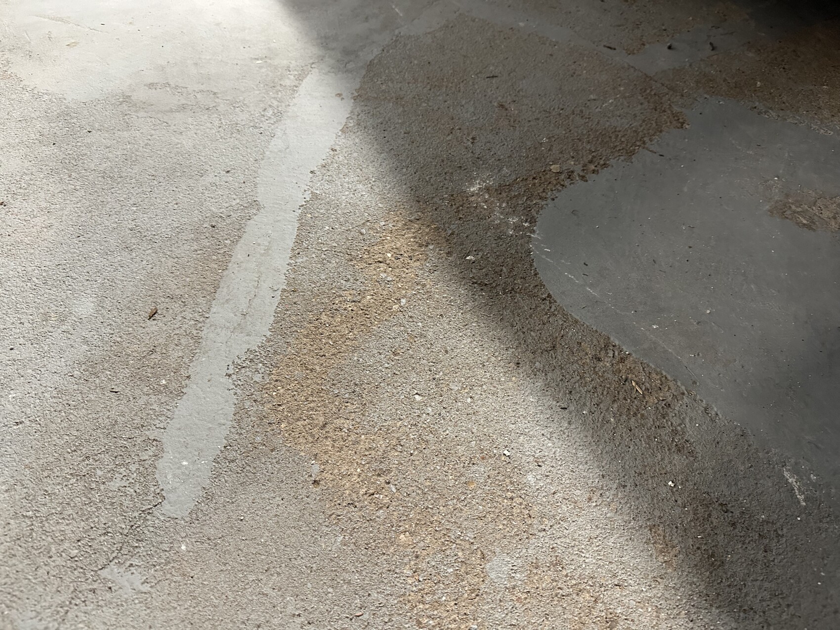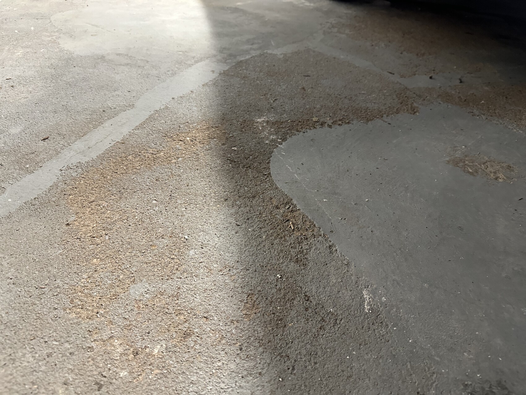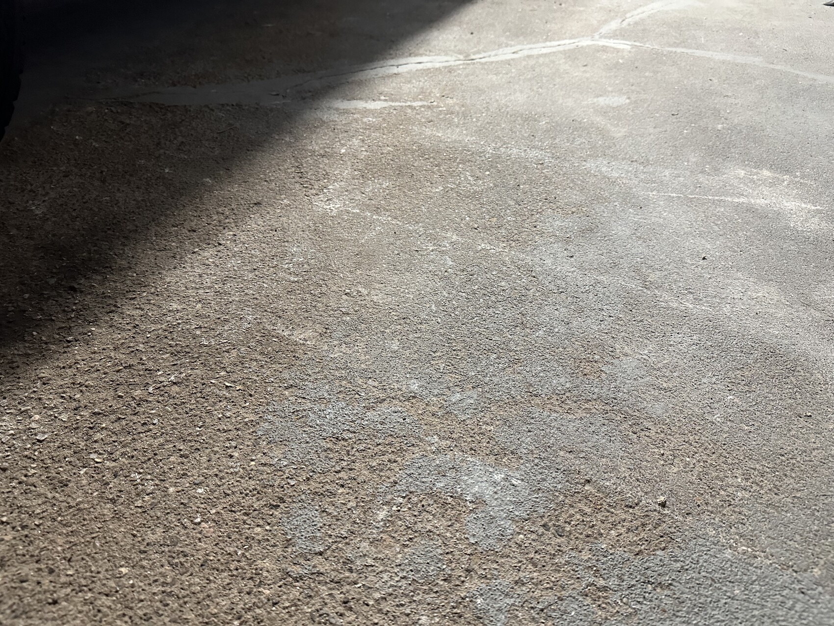 der Garagenboden in unserem Haus hat deutlich sichtbare Macken / Risse und Abplatzungen welche teilweise bis in den darunter liegenden (ich nehme an) Estrich gehen.