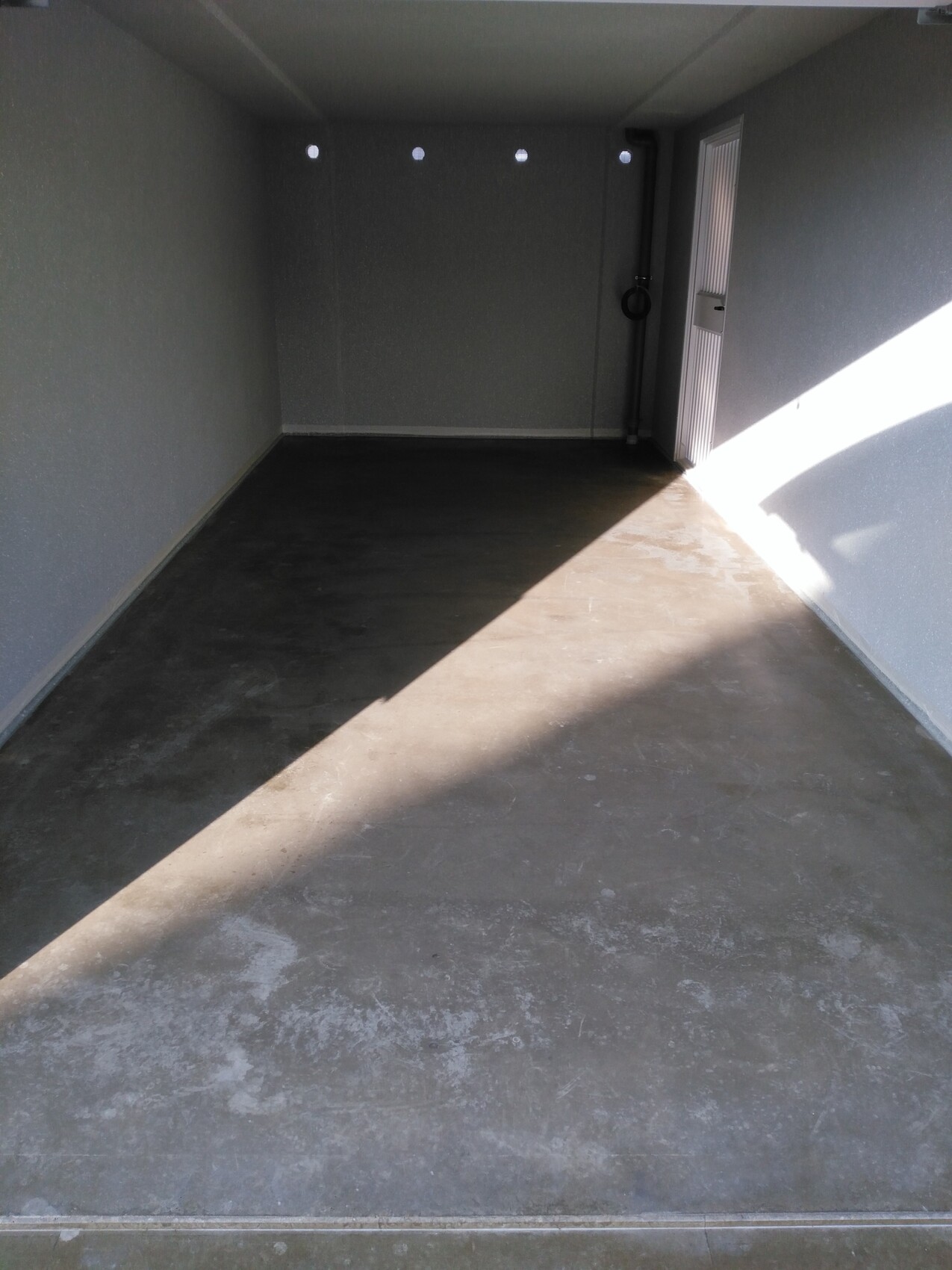 - Die Garage hat bei uns ca 20 m². Das ging am Stück zum Streichen ganz gut (inklusive Ränder mit dem Pinsel Vorstreichen). Mehr qm würde ich als ungeübter allerdings nicht empfehlen. Von der Verarbeitungszeit bin ich ganz gut hingekommen aber da man in der Garage vorne etwas Sonneneinstrahlung hat sollte man da schon zügig arbeiten. Die Farbkleckse haben vorne, wo die Sonne hingescheint hat, leichte Ränder hinterlassen. Aber da hat auch die Vormittagssonne draufgeknallt. Ich war leider durch die Verzögerung aus dem durchrühren etwas spät dran. Die Ränder werde ich vor dem letzten Anstrich vorsichtig anschleifen. Ich denke, dass man danach die Ränder nicht mehr sehen wird.