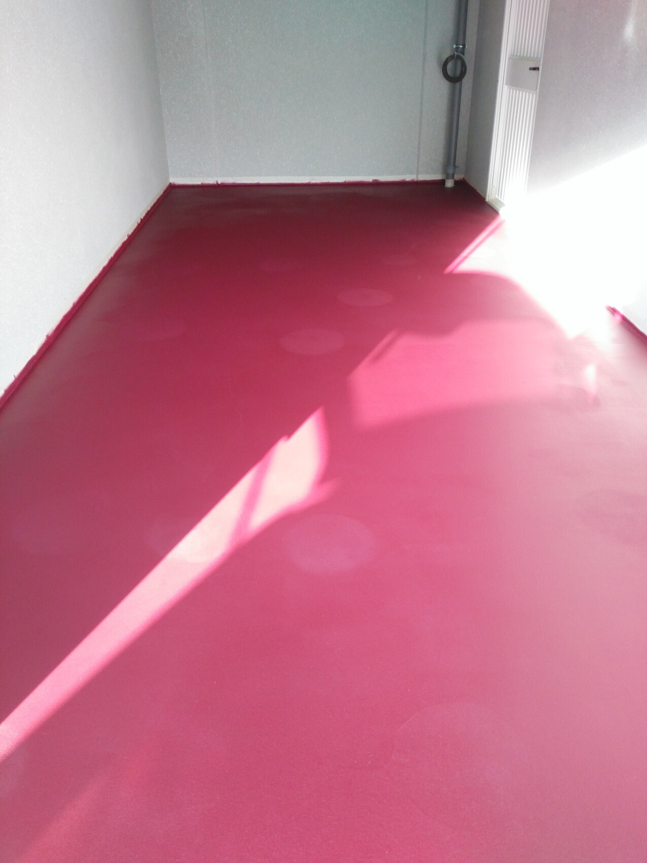 Die ersten beiden Bilder zeigen den ersten Farbanstrich nach einem Tag trocknen. Wie man erkennen kann, haben sich die Farbkleckse abgebildet. Das war scheinbar auch nicht das Mittel der Wahl. Vielleicht wäre die nach dem vollständigen Aushärten noch verschwunden. Aber wie gesagt war die Umgebungstemperatur auch nicht ideal. Beim letzten Anstrich habe ich dann direkt aus dem Eimer geschüttet, einen Bereich gestrichen und wieder neu ausgeschüttet. Da die Umgebungstemperatur nicht so hoch war wie die Tage zuvor, war das scheinbar kein Problem.