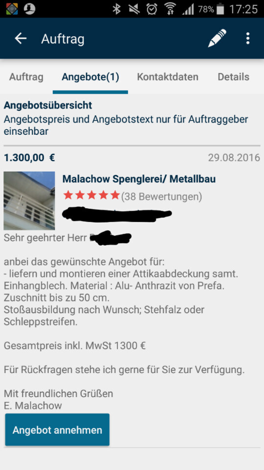 Hier als Titanzink 21 lfd. Meter 1100 Euro brutto tutto kompletto.