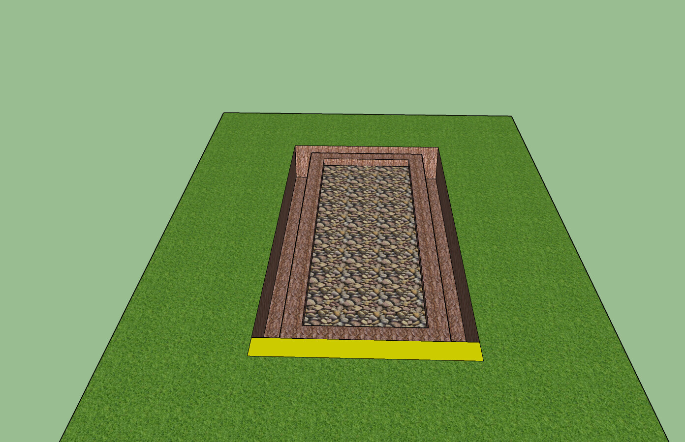 - Ich würde als erstes den "Graben" der Frostschürze ausheben und nur ein Steg (gelb) stehen lassen.