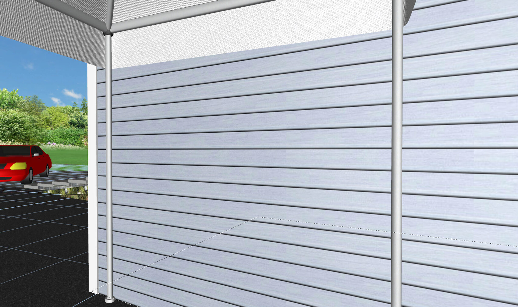 Und wenn das Garagentor max. breit ausgeführt wird und die Garage etwas nach "hinten" gesetzt wird, funktioniert es.