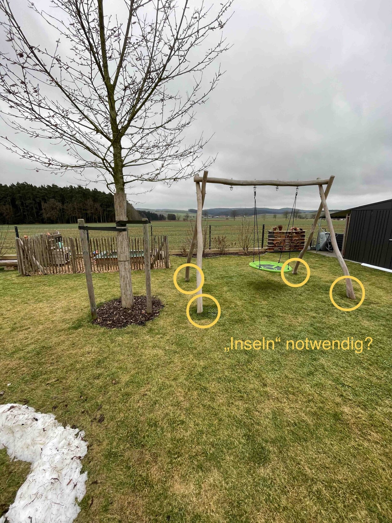 3. Muss ich für die Pfosten einzelne "Inseln" anlegen oder genügt dies für den Baum?