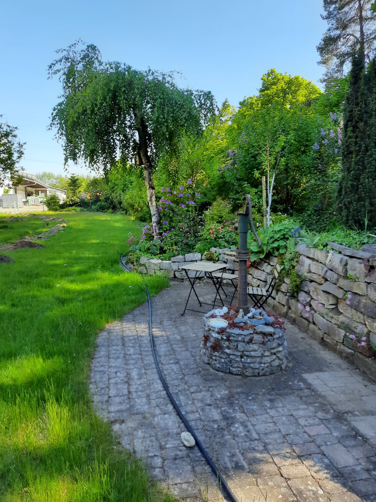 Wieso habt ihr andere Pflastersteine für den Bereich ums Haus genommen als für die Terrasse? Das hätte ich einheitlich gemacht. Aber ihr hattet sicher einen Grund dafür, oder?